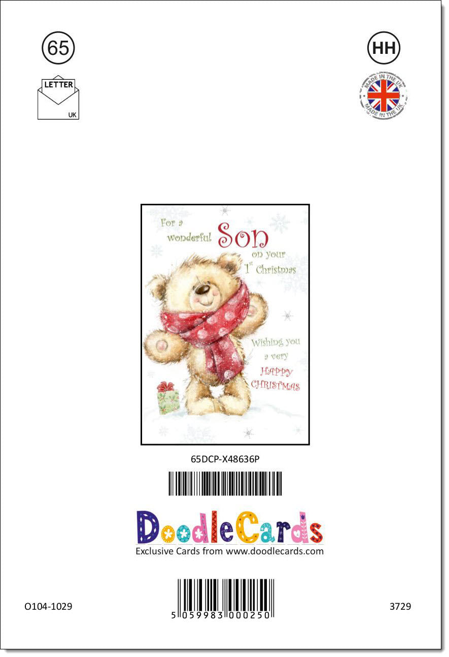 Sons 1st Christmas Card Teddy Bear With Red Scarf