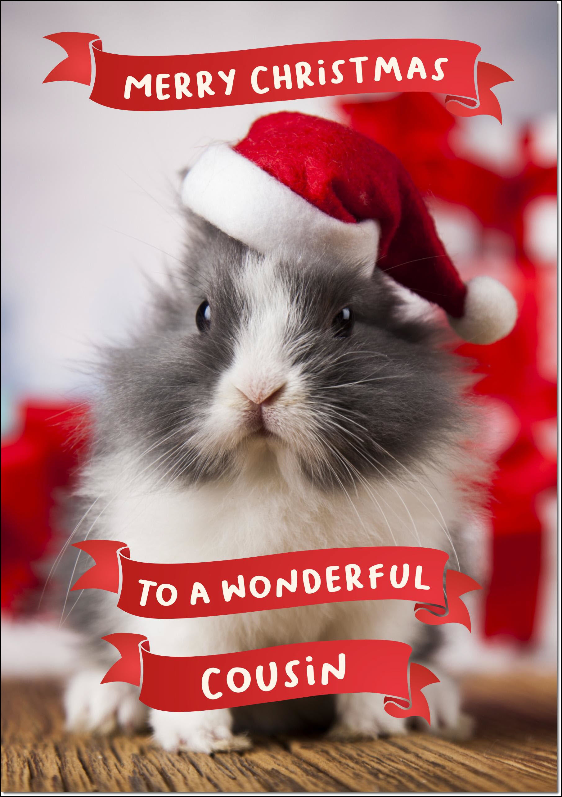 Cousin Christmas Card Cute Santa Paws Rabbit Pet Christmas Hat