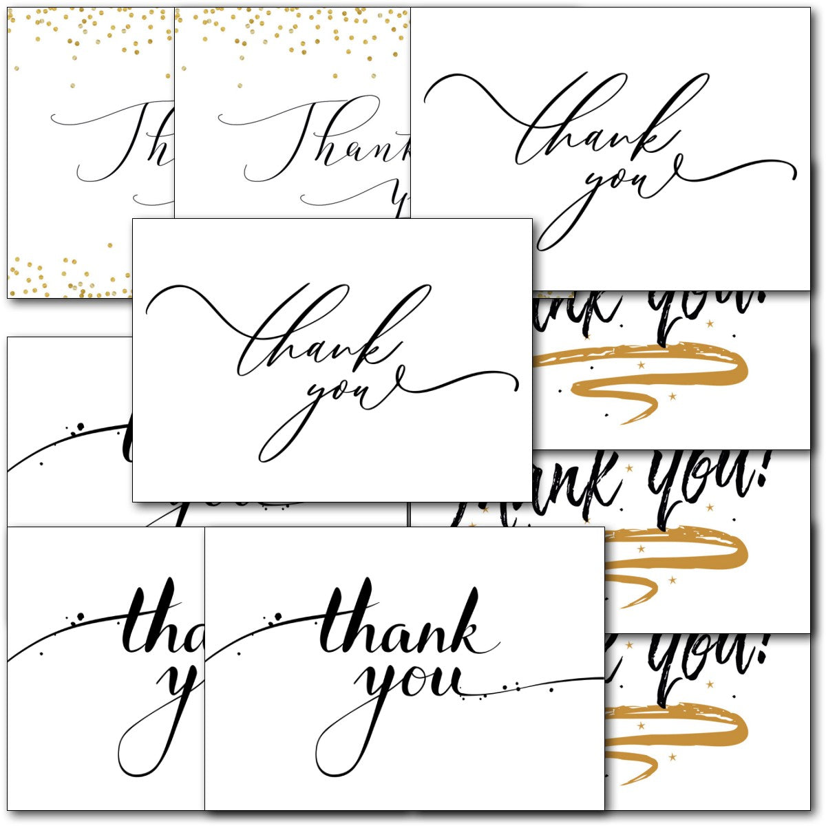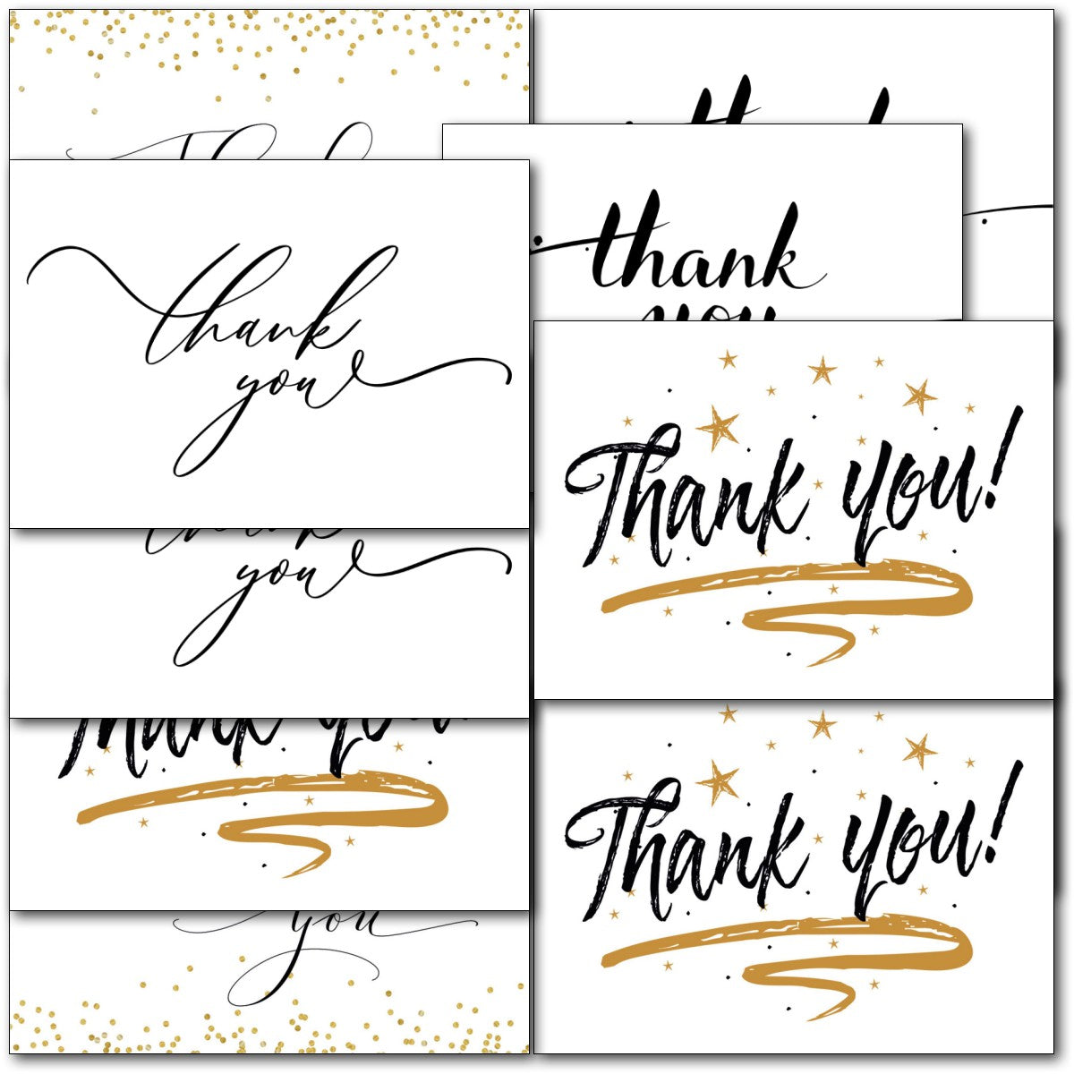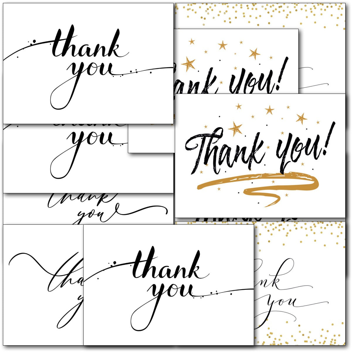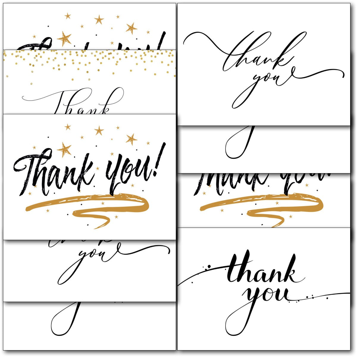 THANK YOU MULTIPACK ⭐Pack of 10 high quality Thankyou note cards, Notelets - 5 Different Designs ⭐ Professionally printed ⭐ Supplied with white envelopes⭐