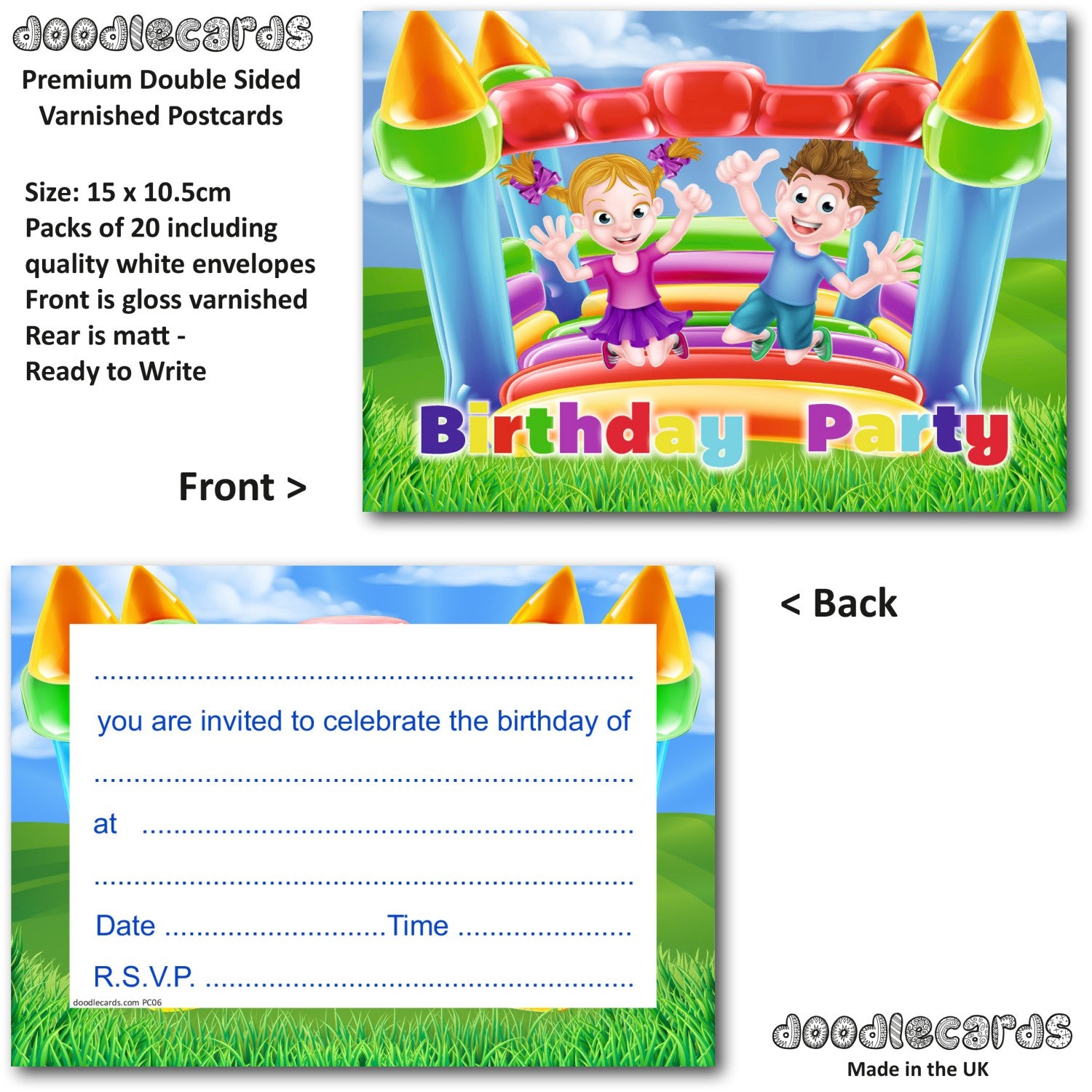 Birthday Party Invitations Bouncy Castle Pack of 20 Invites & Envelopes