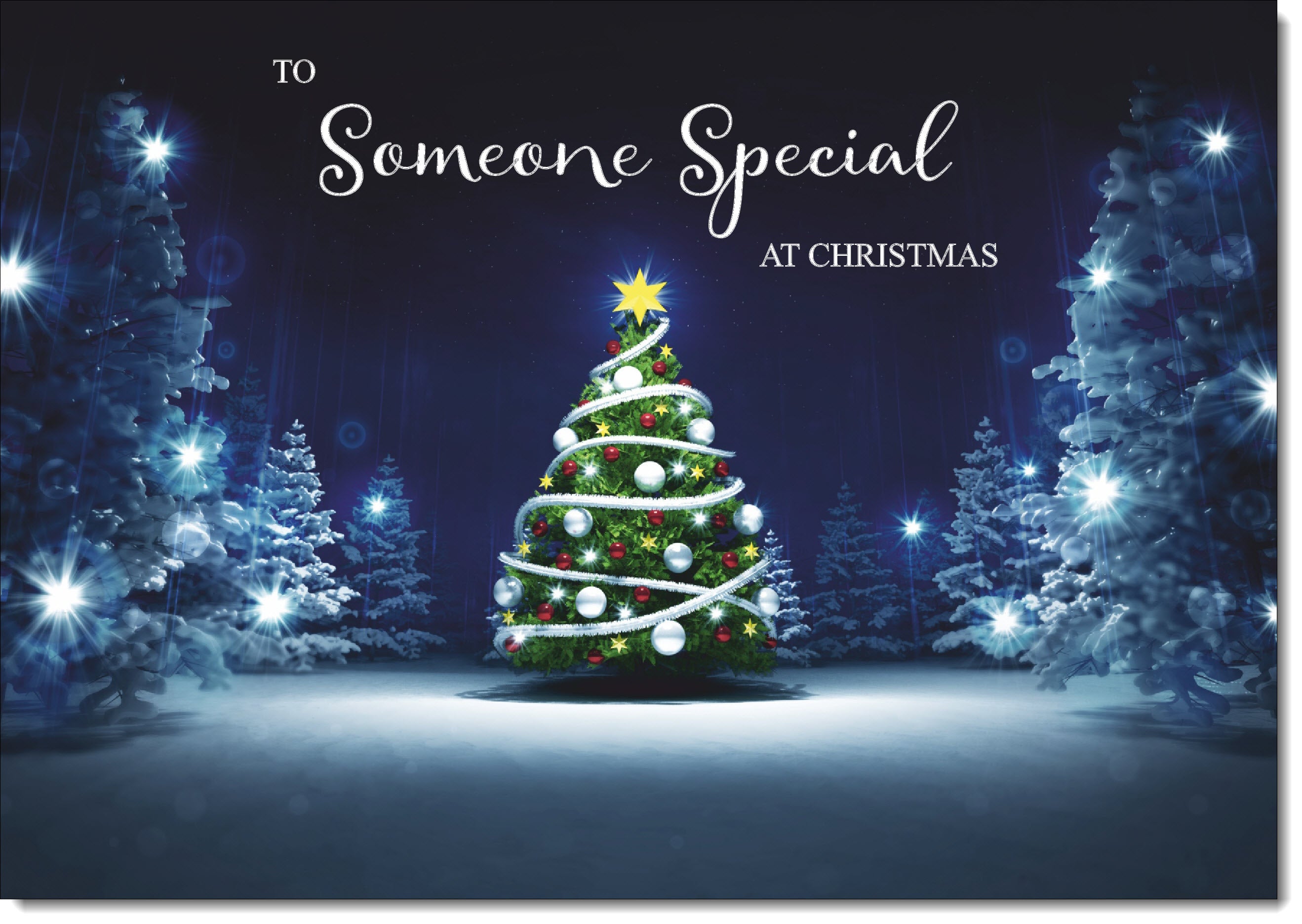 Someone Special Christmas Card Christmas Tree Lights in Dark Sky