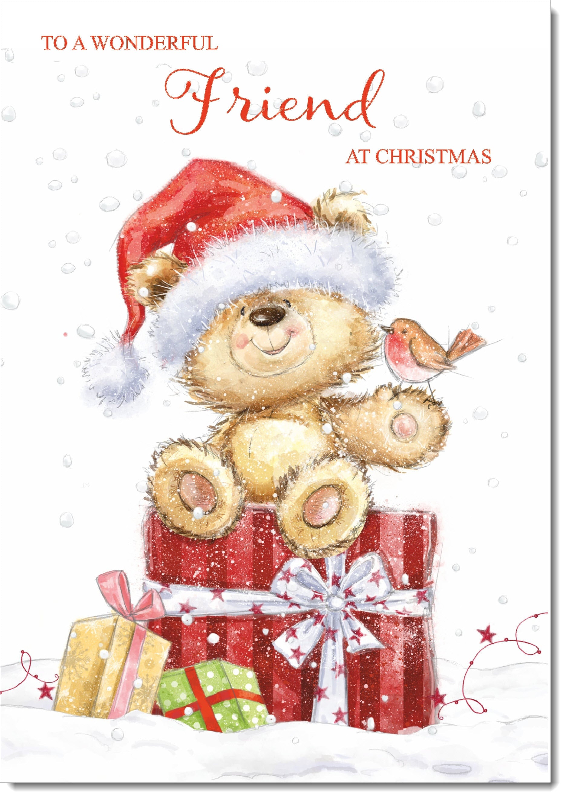 Friend Christmas Card Cute Bear on Parcel