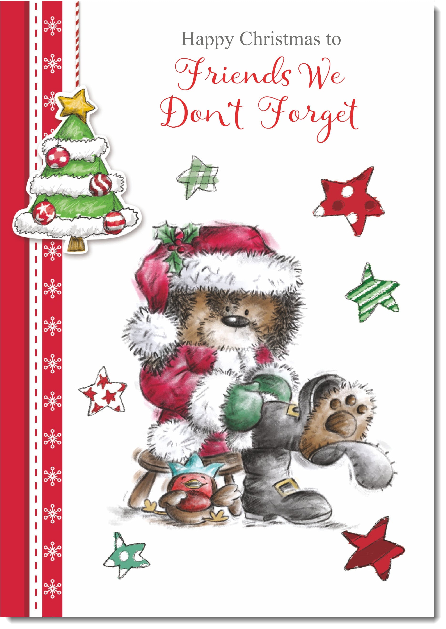 Friends We Don't Forget Christmas Card Funny Santa Bear and Broken Boot