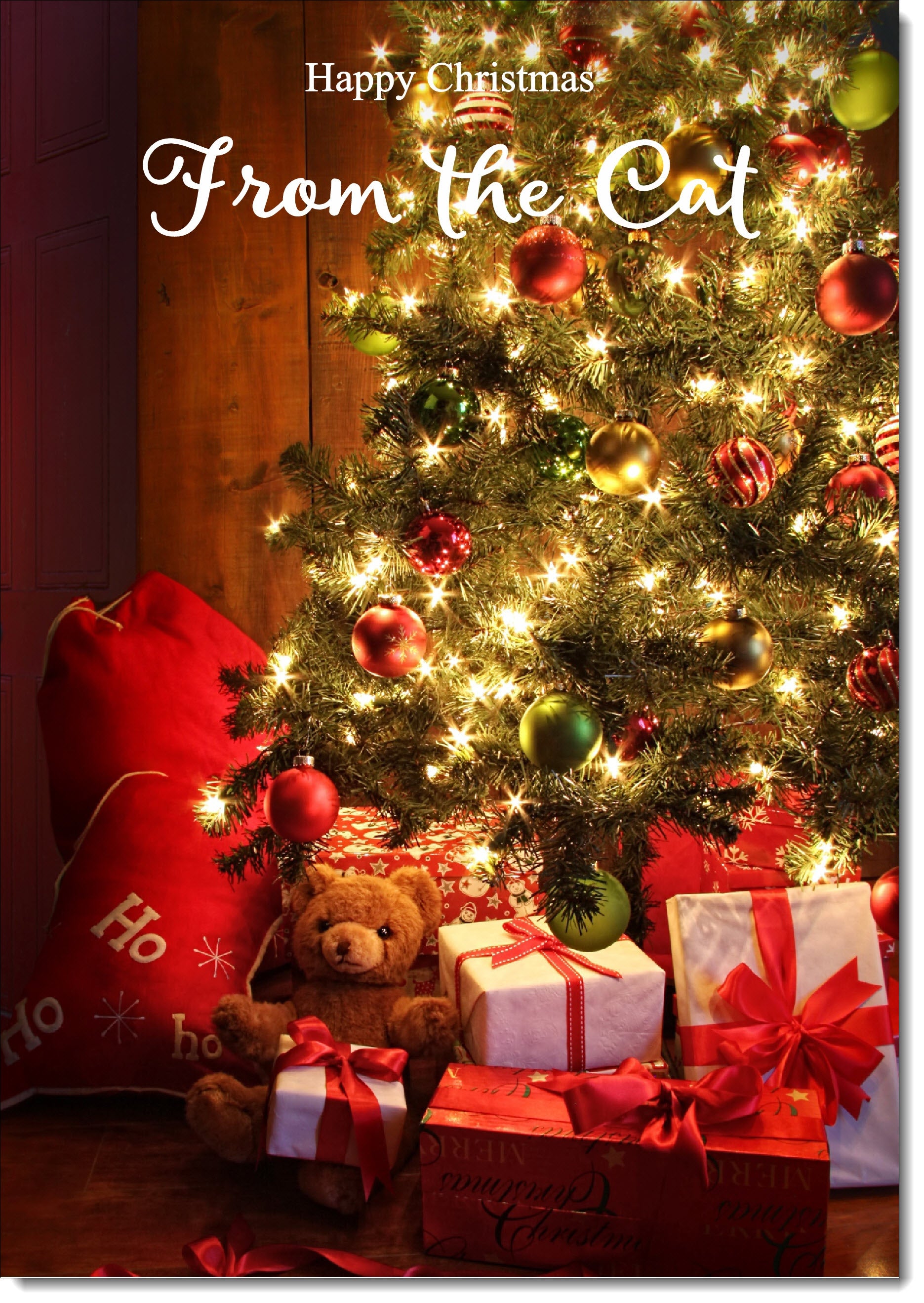 From The Cat Christmas Card Teddy by Christmas Tree
