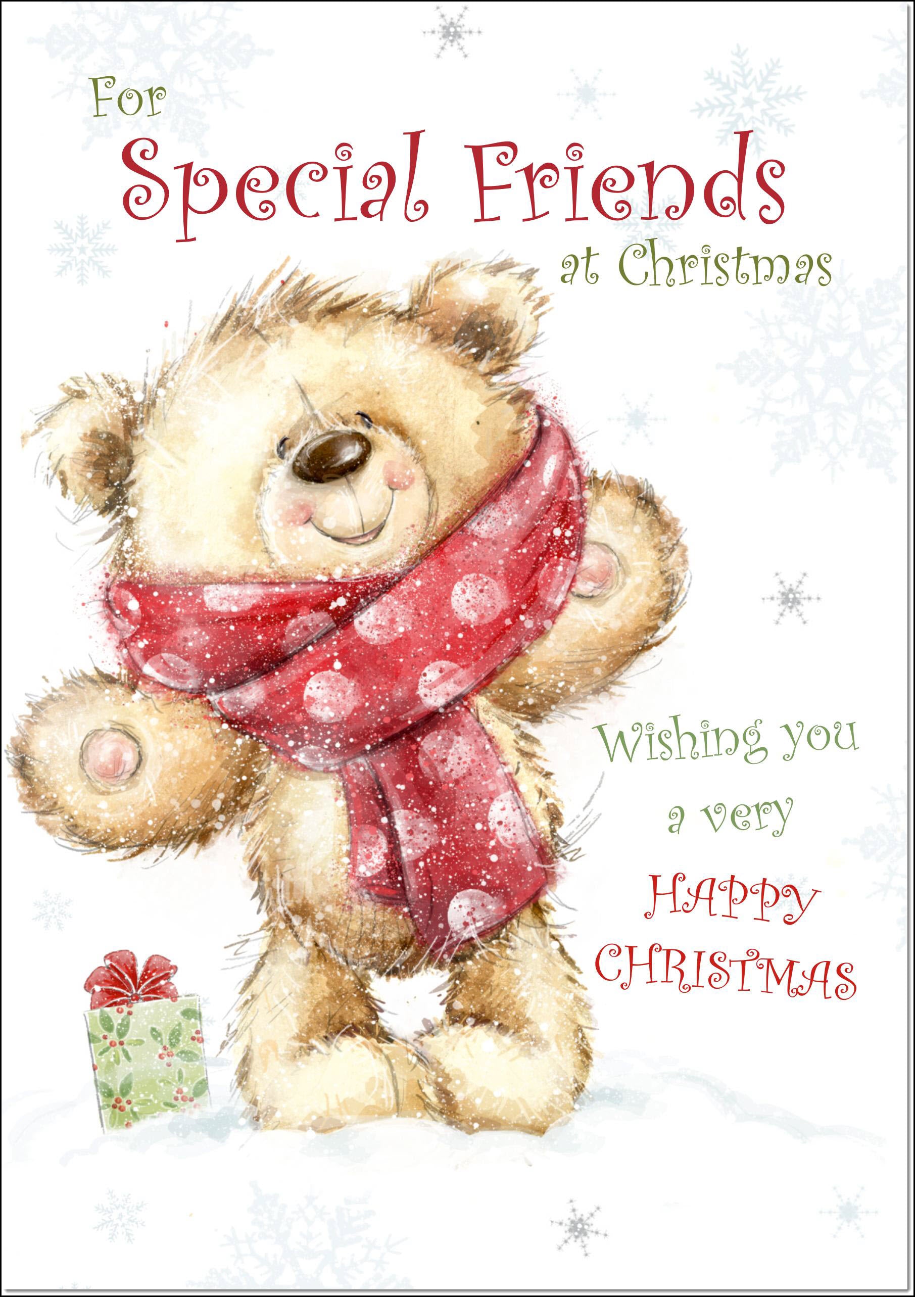 Special Friends Christmas Card Teddy Bear With Red Scarf