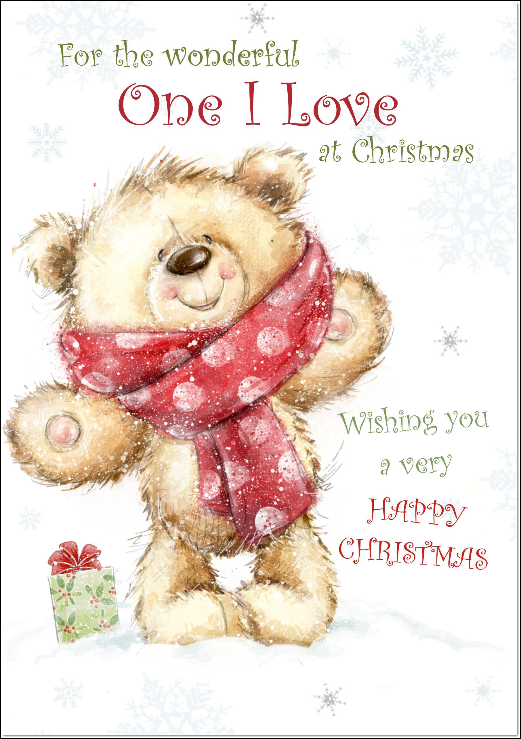 One I Love Christmas Card Teddy Bear With Red Scarf