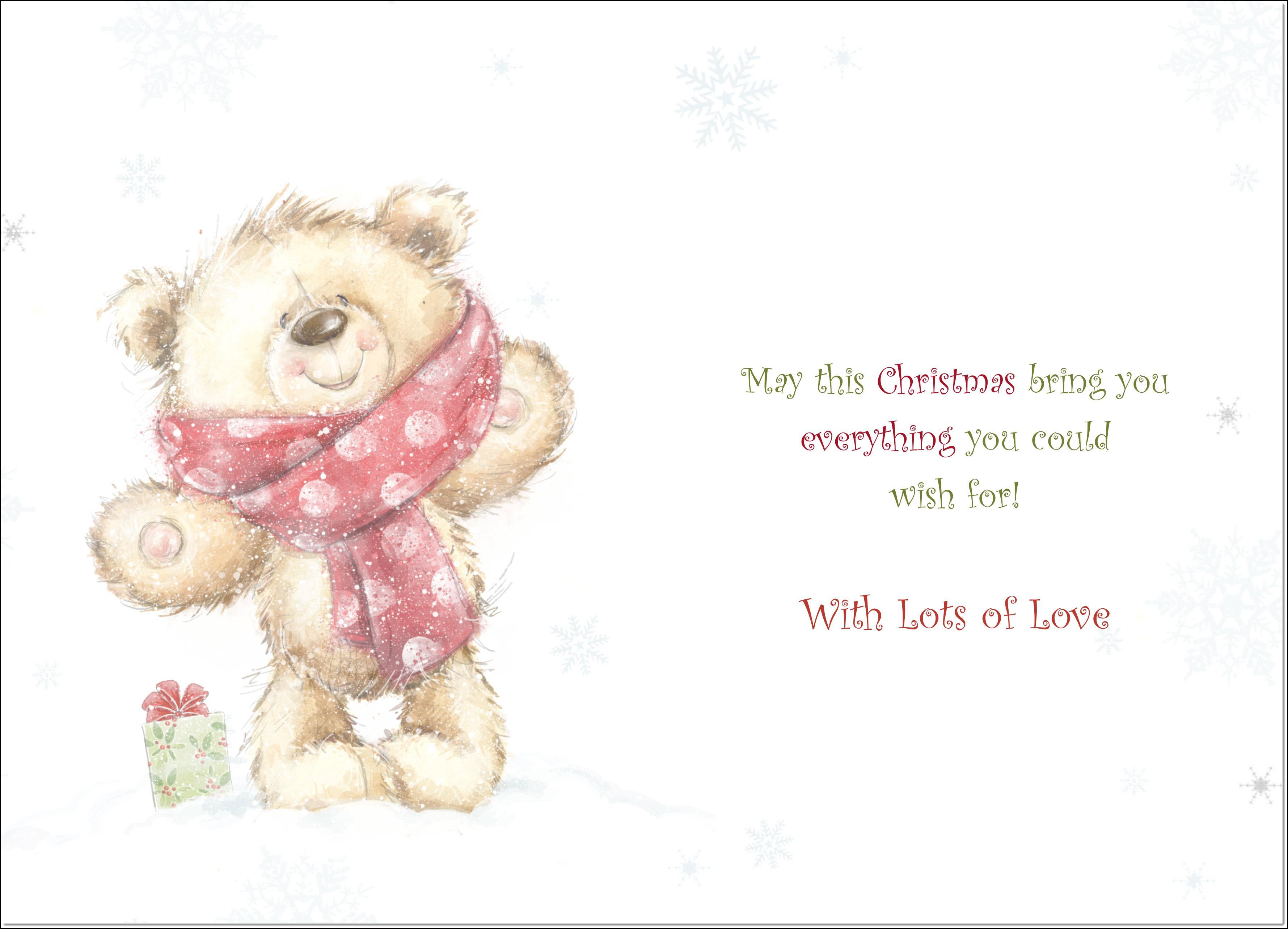 Teacher Christmas Card Teddy Bear With Red Scarf