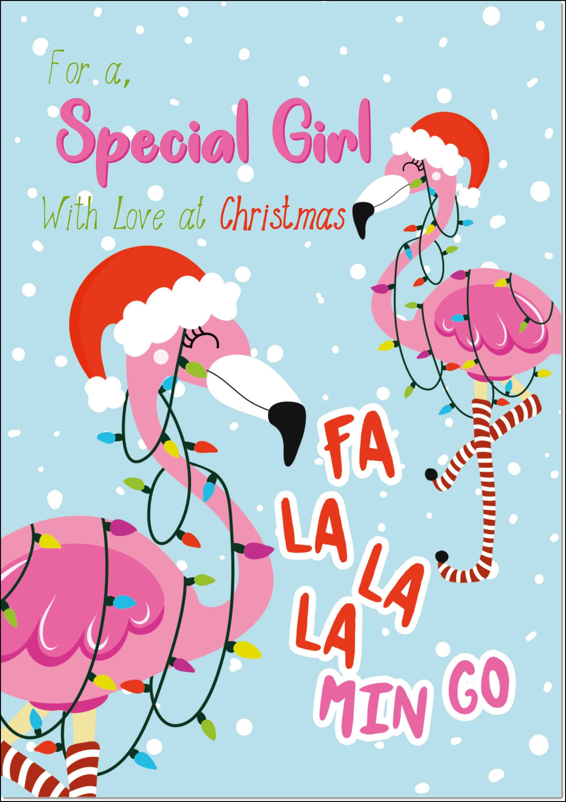 Special Girl Christmas Card Flamingo Christmas Tree Lights