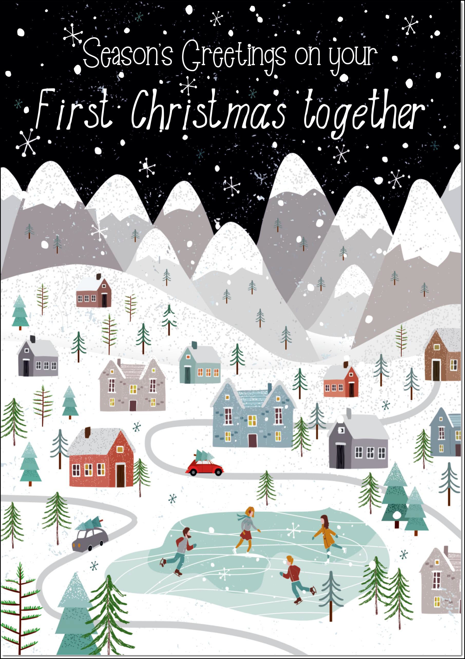 1st Together Christmas Card Mountain Scene In Snowy Village