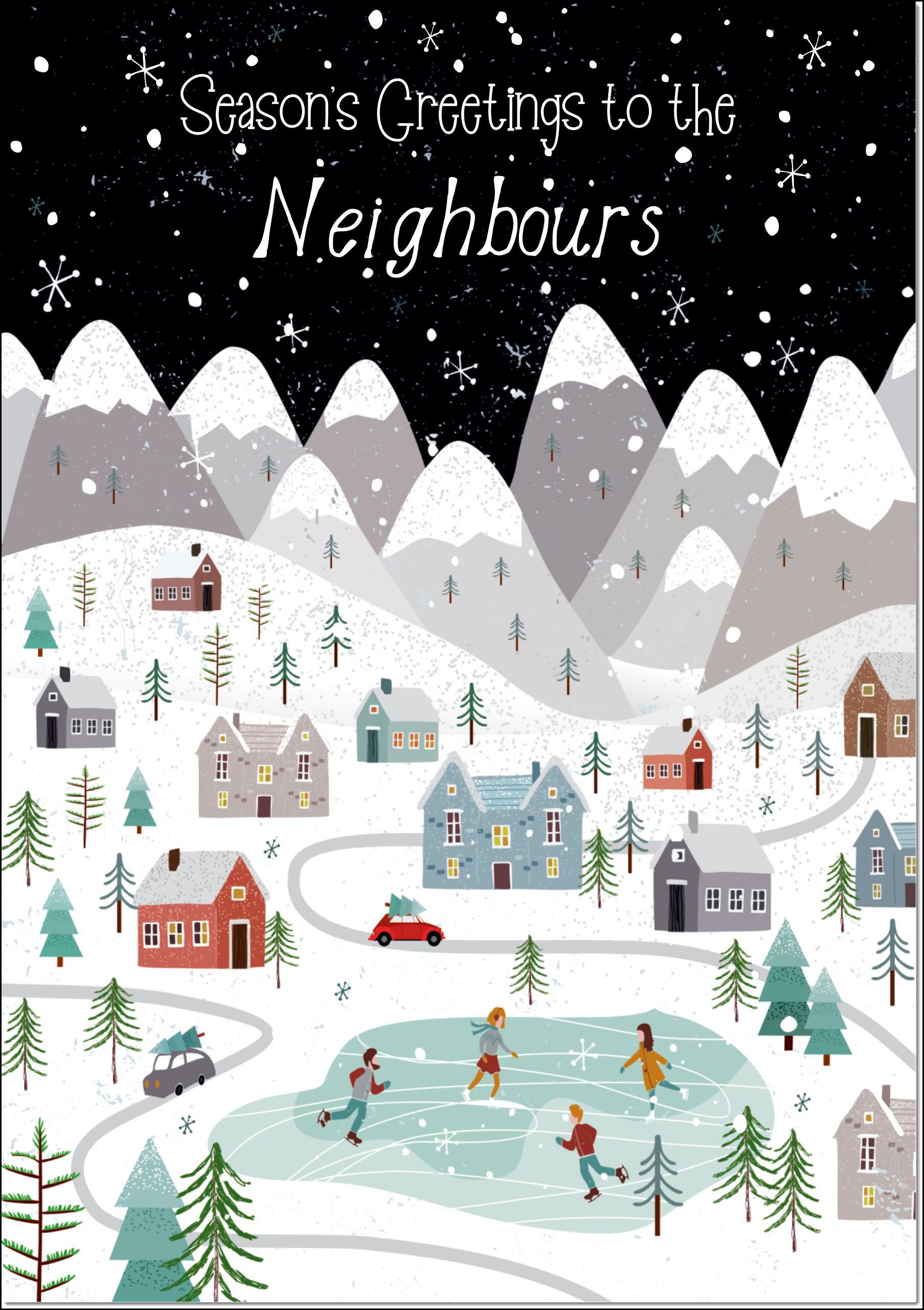 Neighbours Christmas Card Mountain Scene In Snowy Village