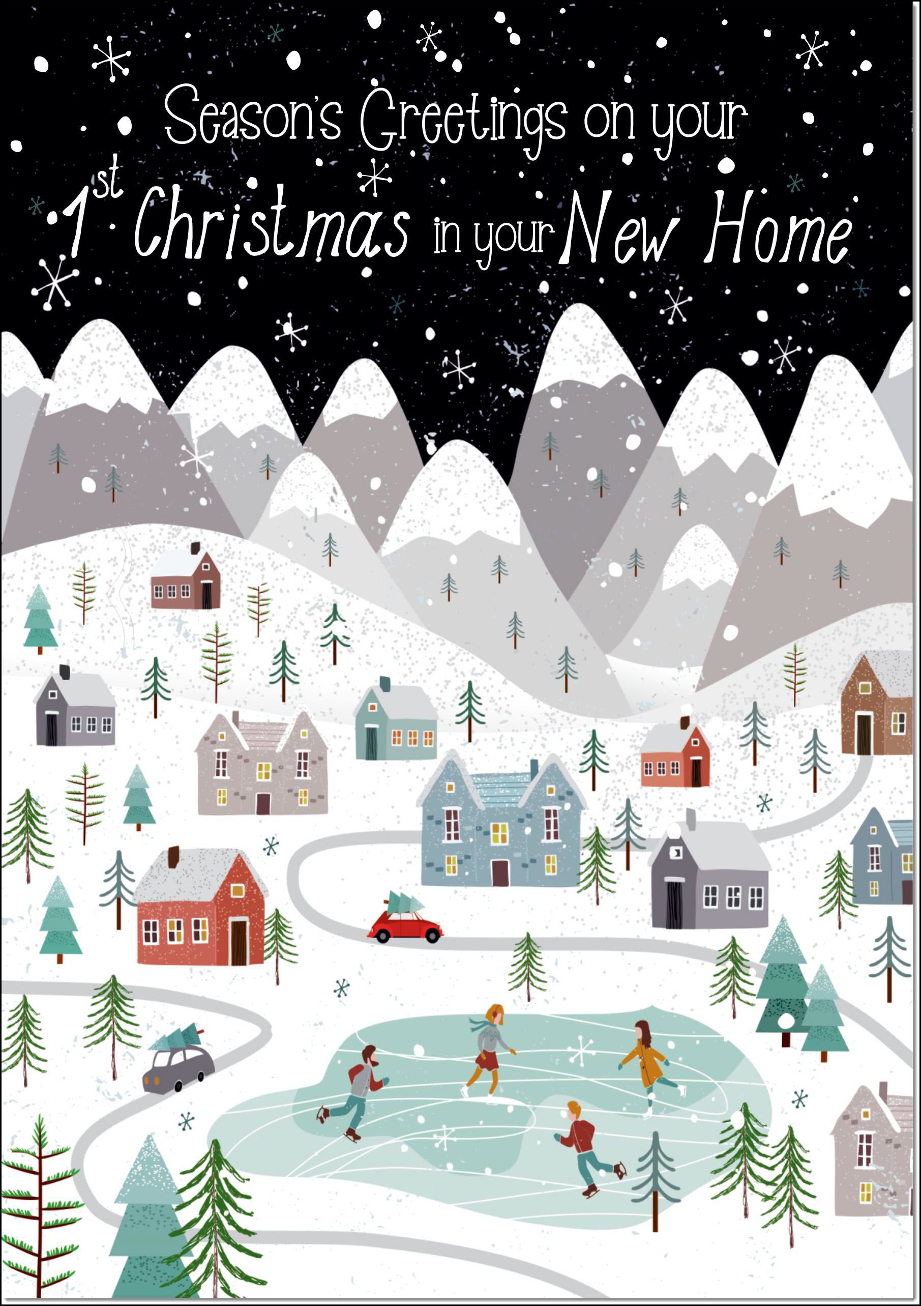 1st Christmas in New Home Card Mountain Scene In Snowy Village