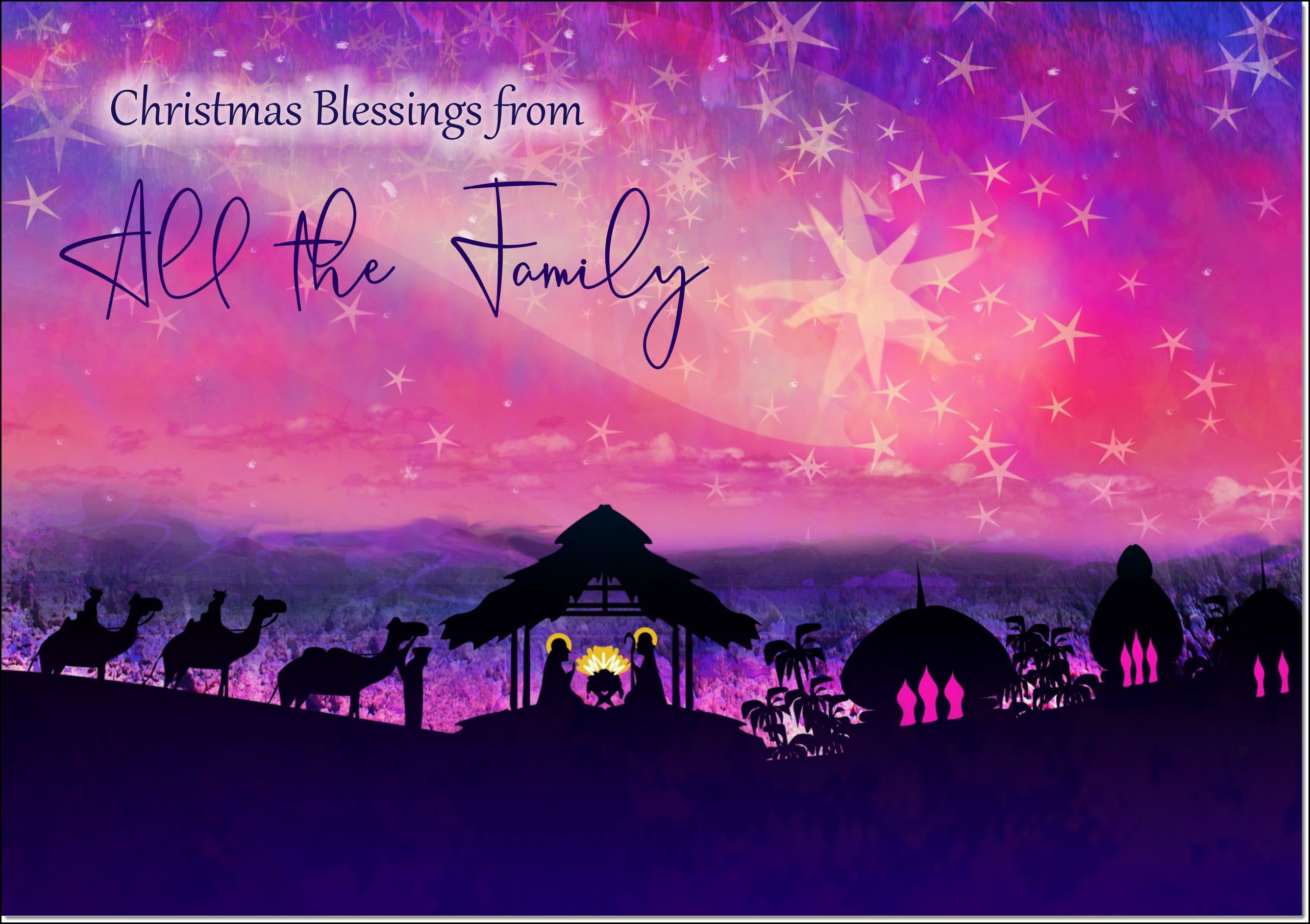 From All The Family Christmas Card Nativity Scene Evening Watercolour