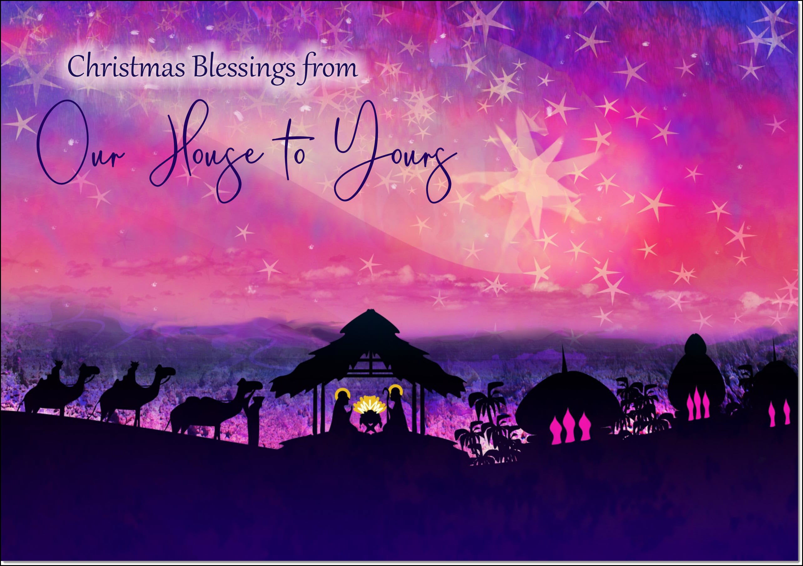 House To House Christmas Card Nativity Scene Evening Watercolour