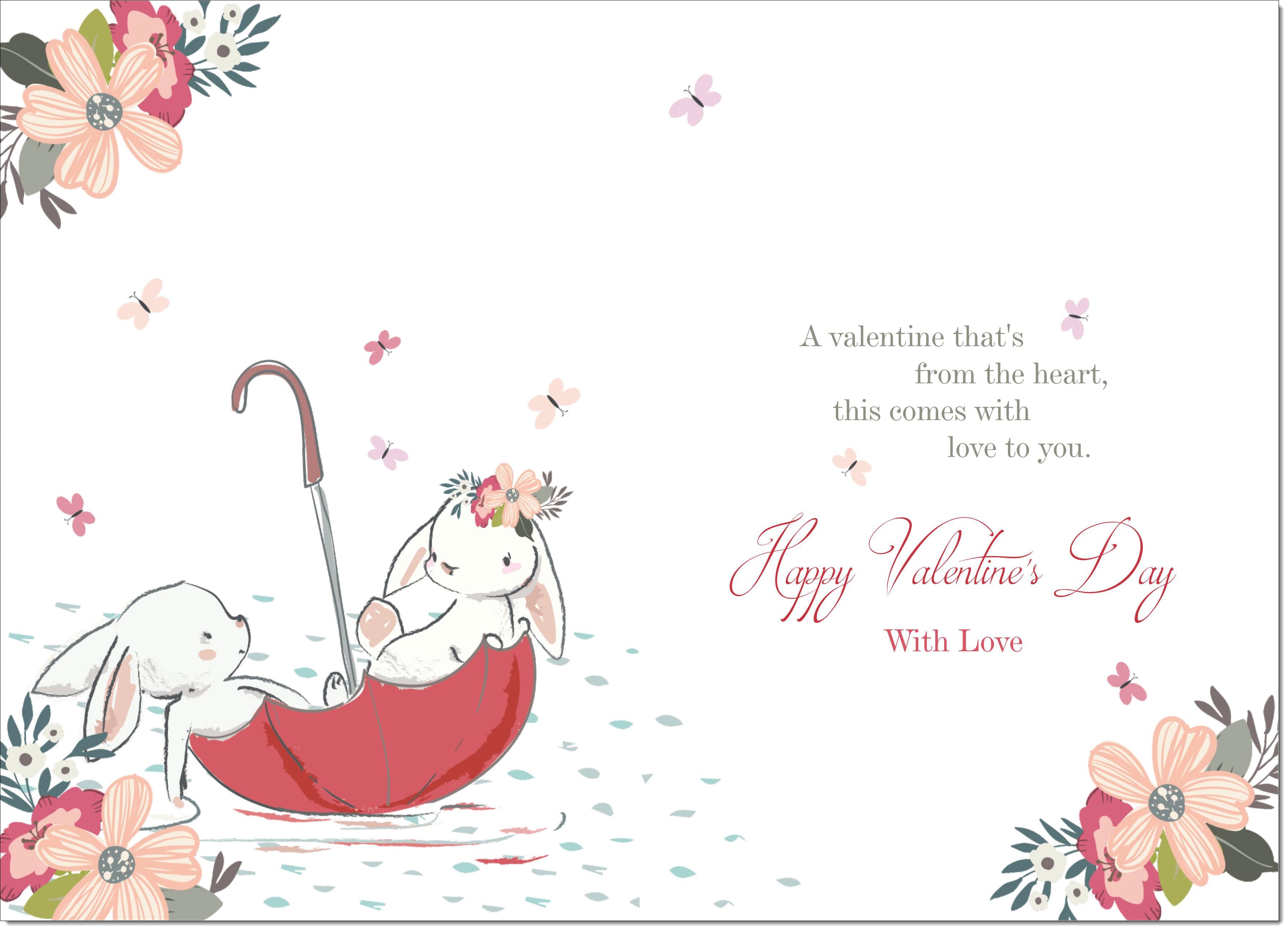 Partner Valentines Card Rabbits Floating in Whimsical Umbrella