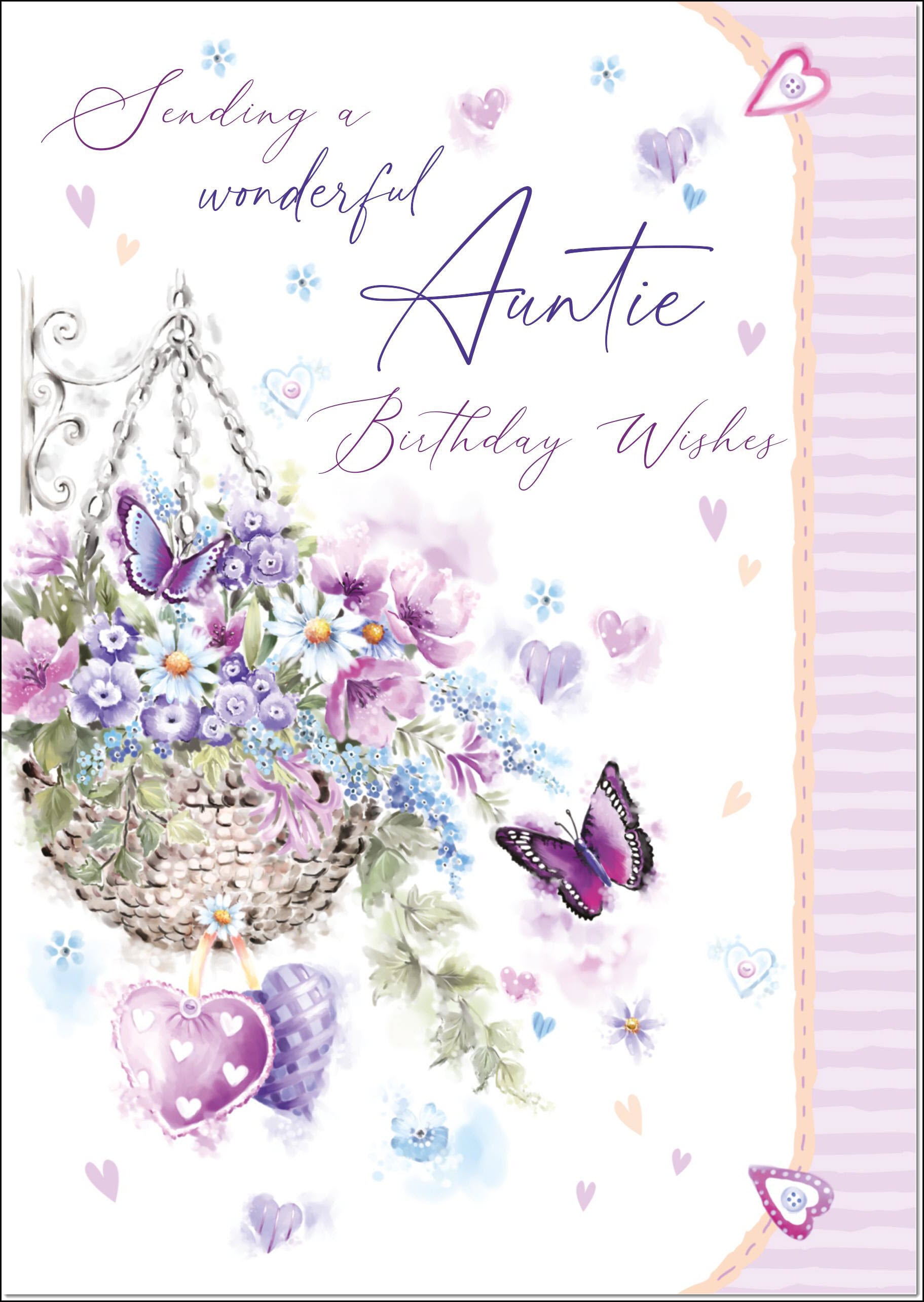Auntie Birthday Card Purple Hanging Basket