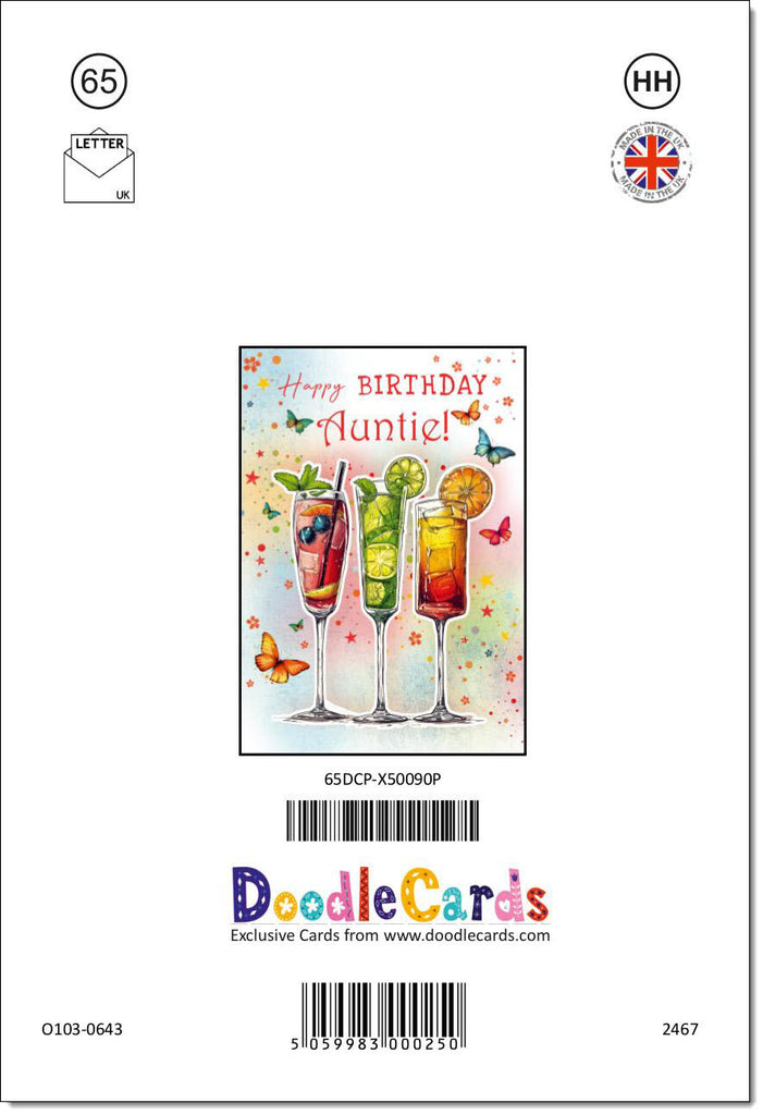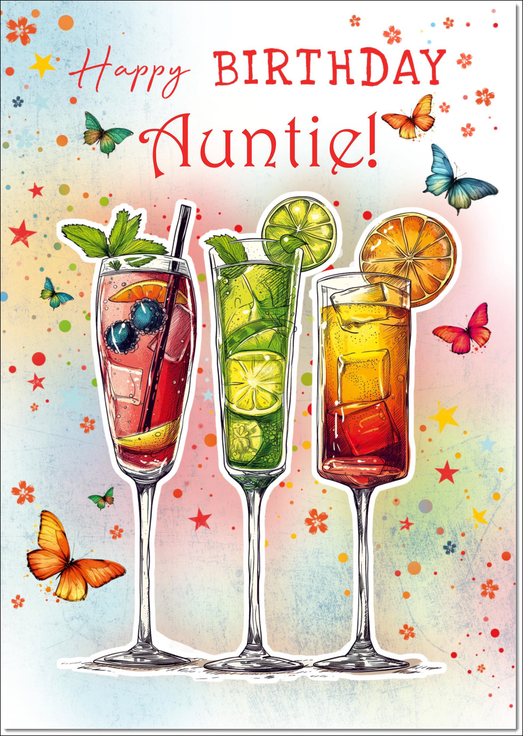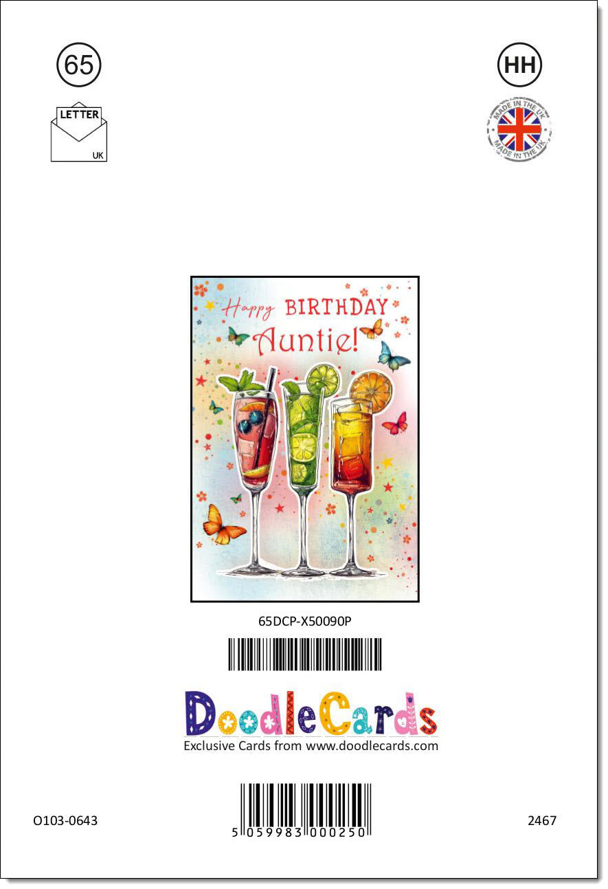 Auntie Birthday Card Cocktails and Butterflies