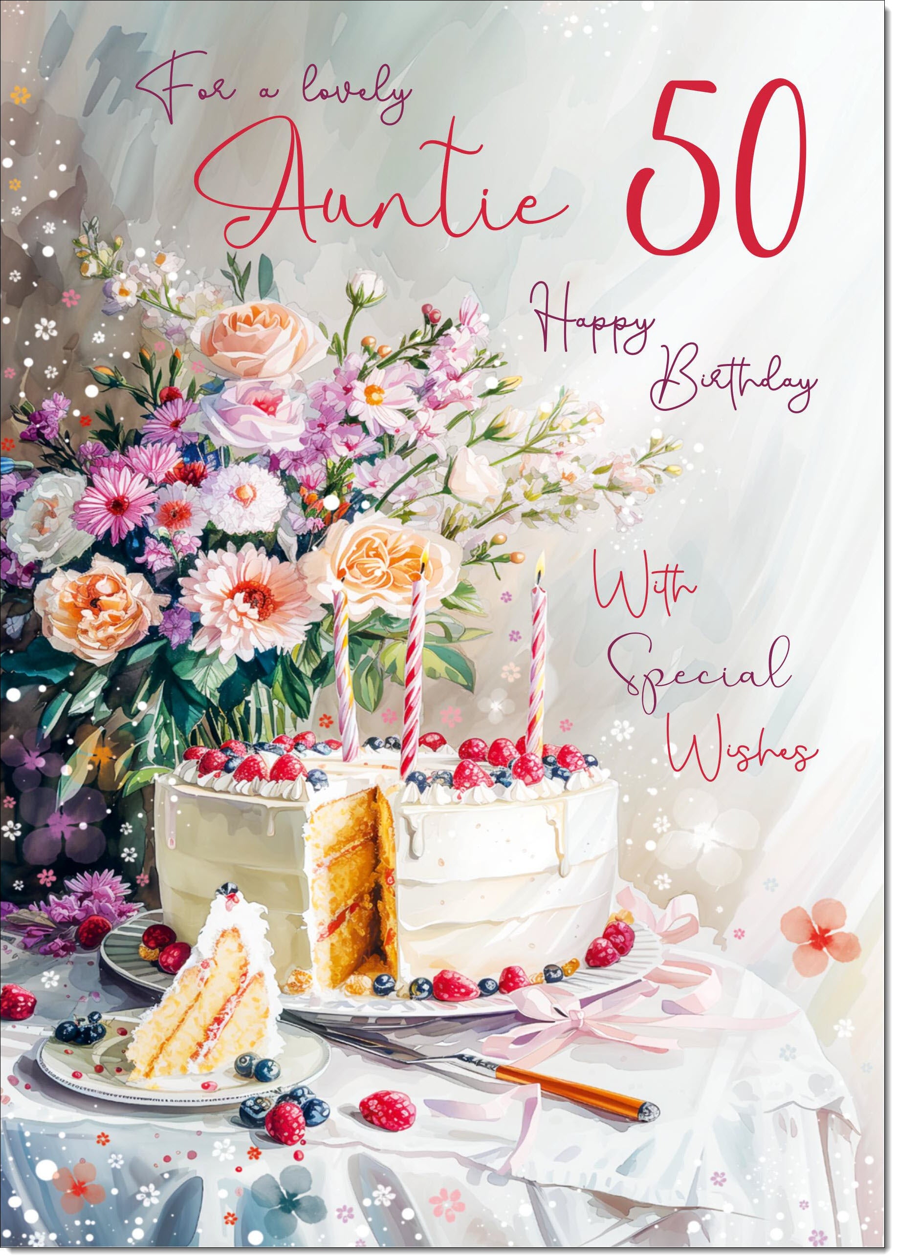 Auntie 50th Birthday Card Age 50 Birthday Cake and Flowers