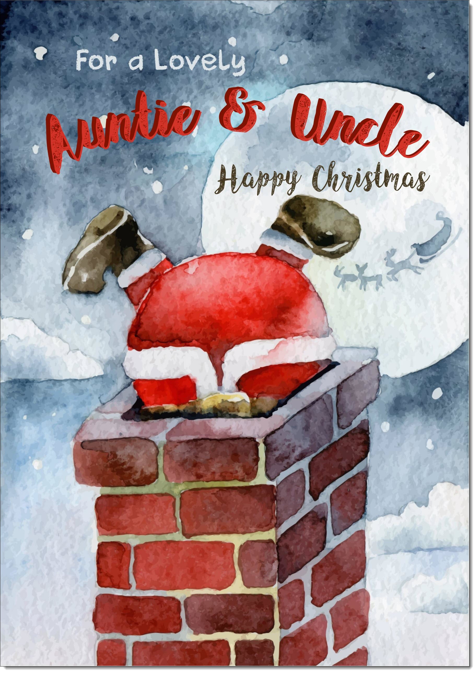 Auntie & Uncle Christmas Card Santa Stuck in the Chimney