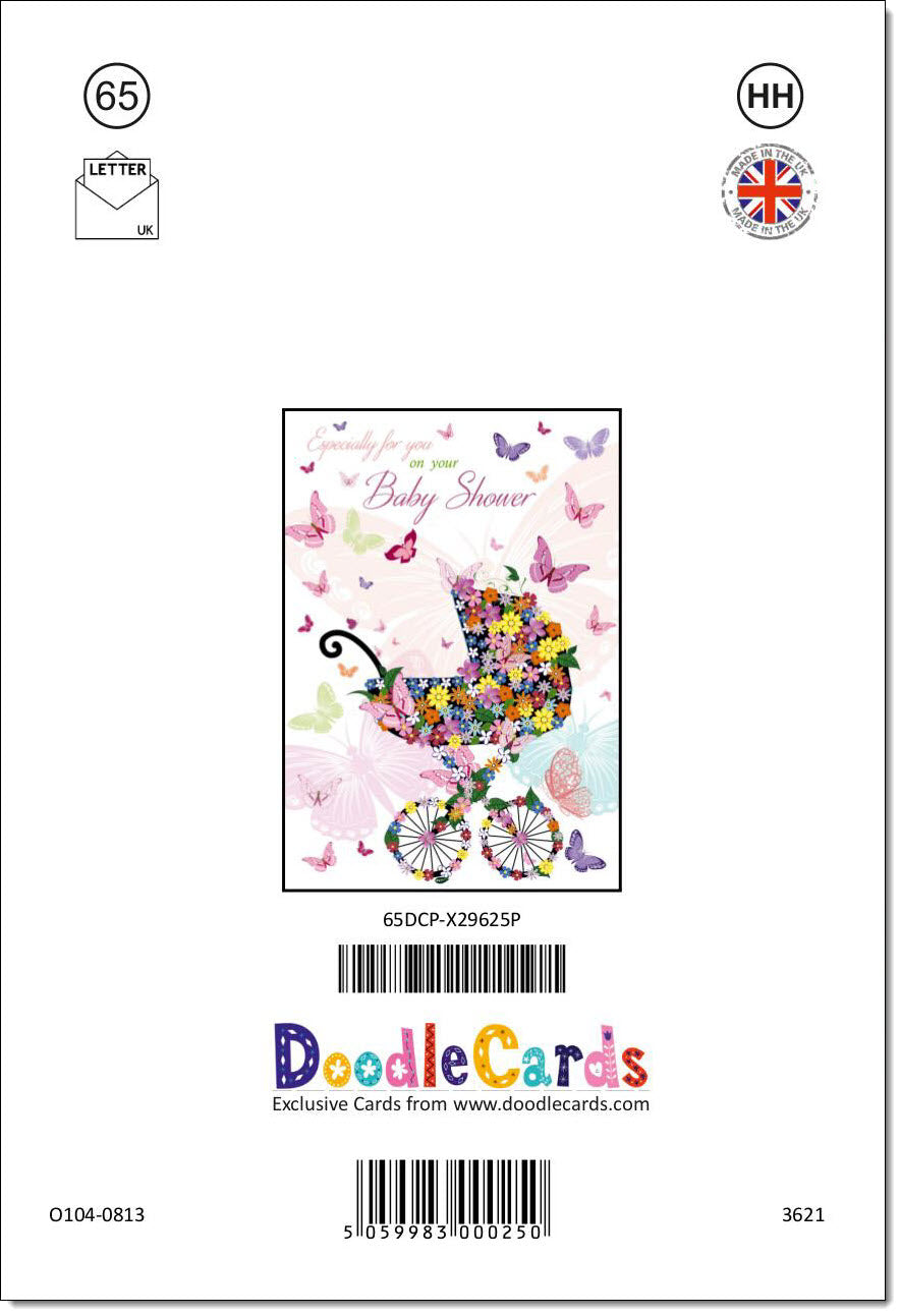 Baby Shower Card Butterfly Pram