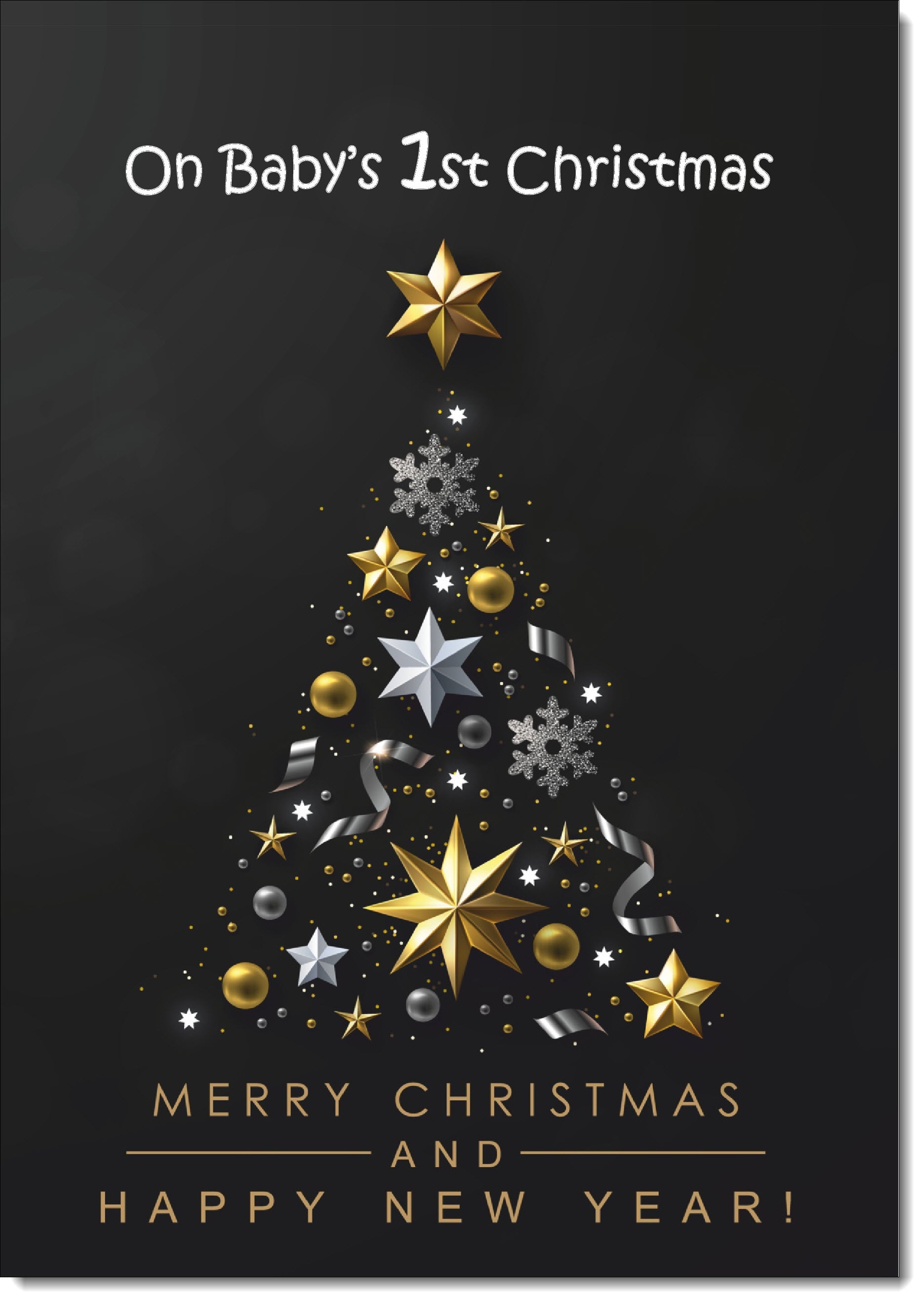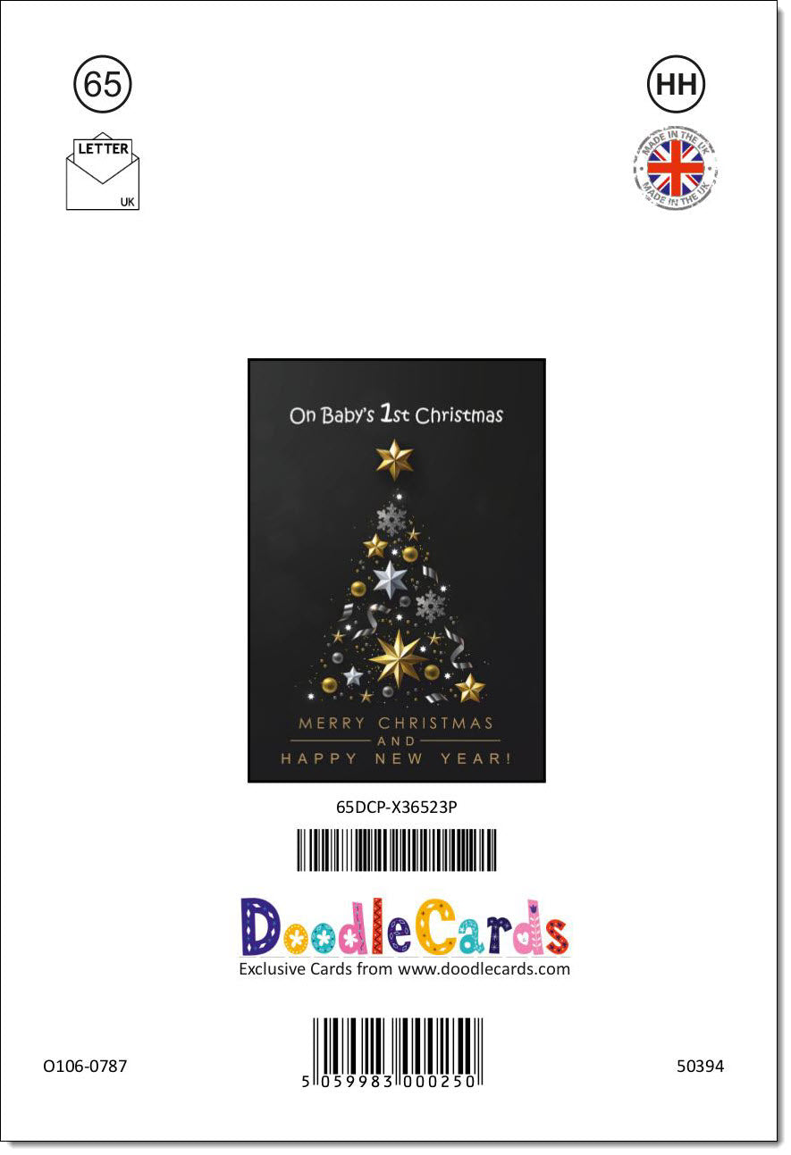 Babys 1st Christmas Card Black Abstract Christmas Tree
