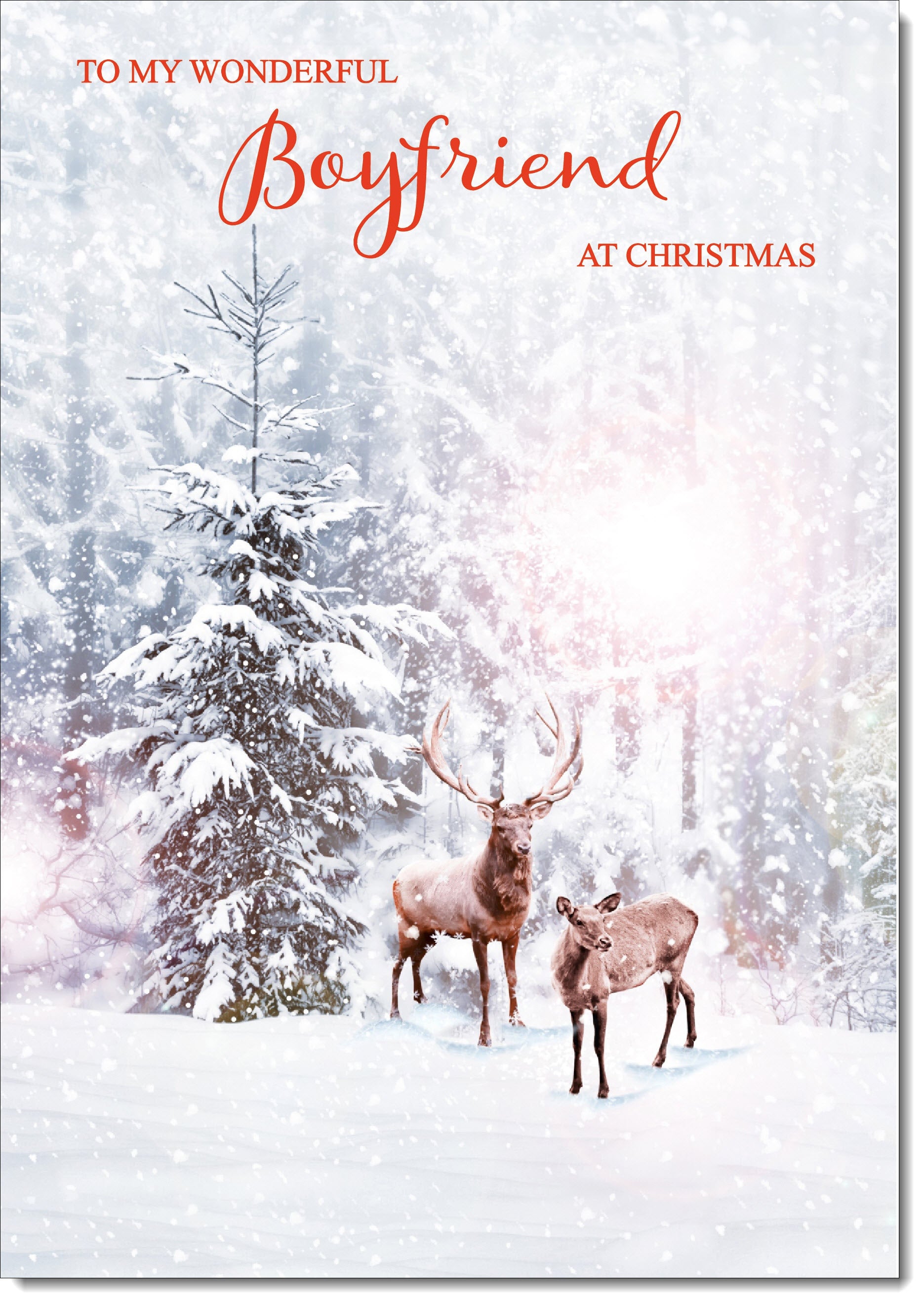 Boyfriend Christmas Card Stag and Doe in Snowy Forest
