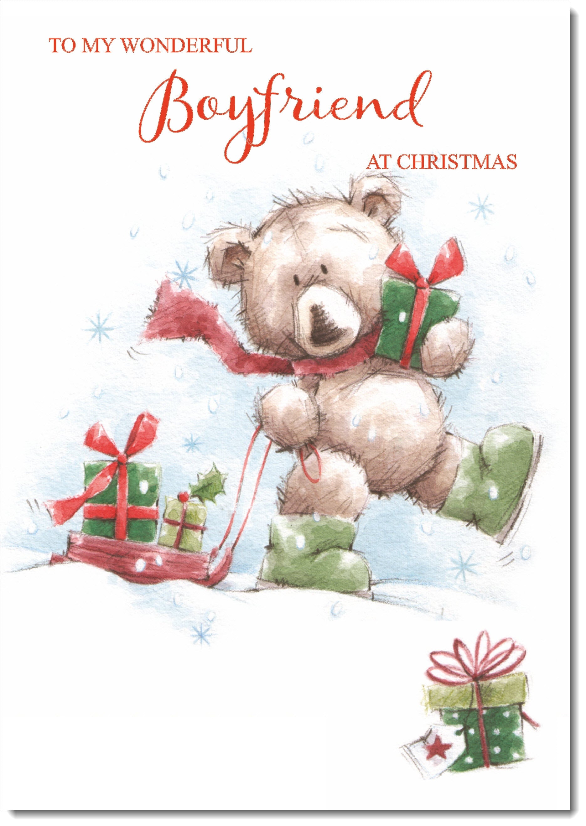 Boyfriend Christmas Card Cute Bear with Sled