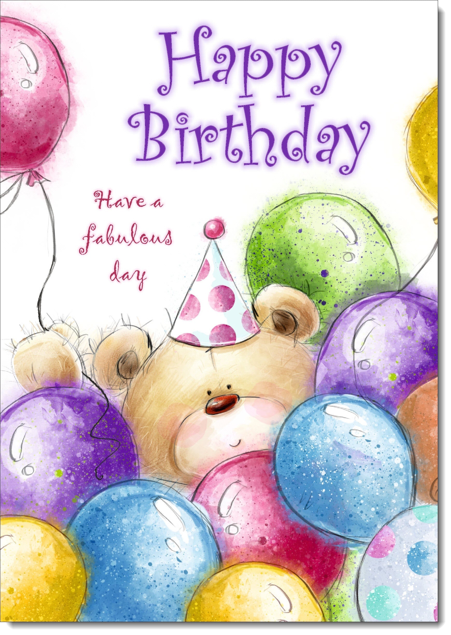 Happy Birthday Card Cute Teddy Bear in Balloons