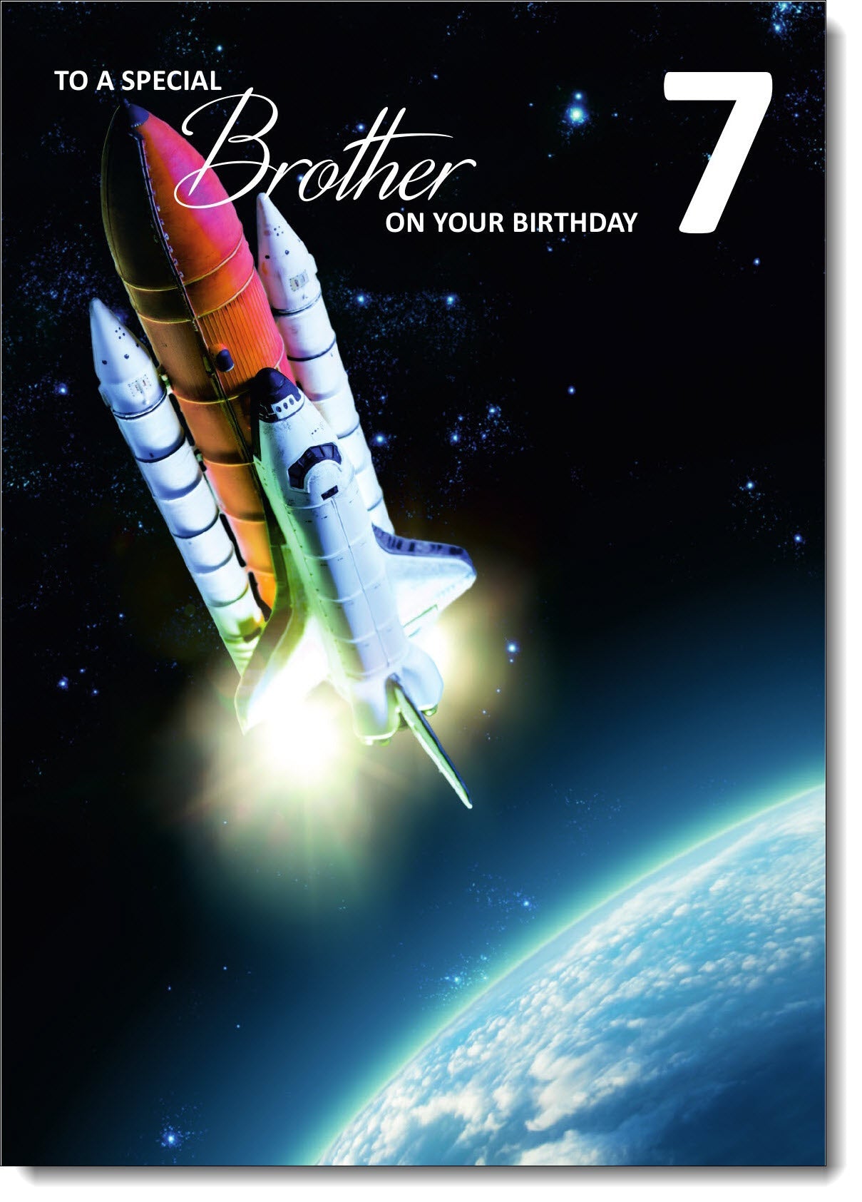 Brother 7th Birthday Card Age 7 Rocket Ship in Space