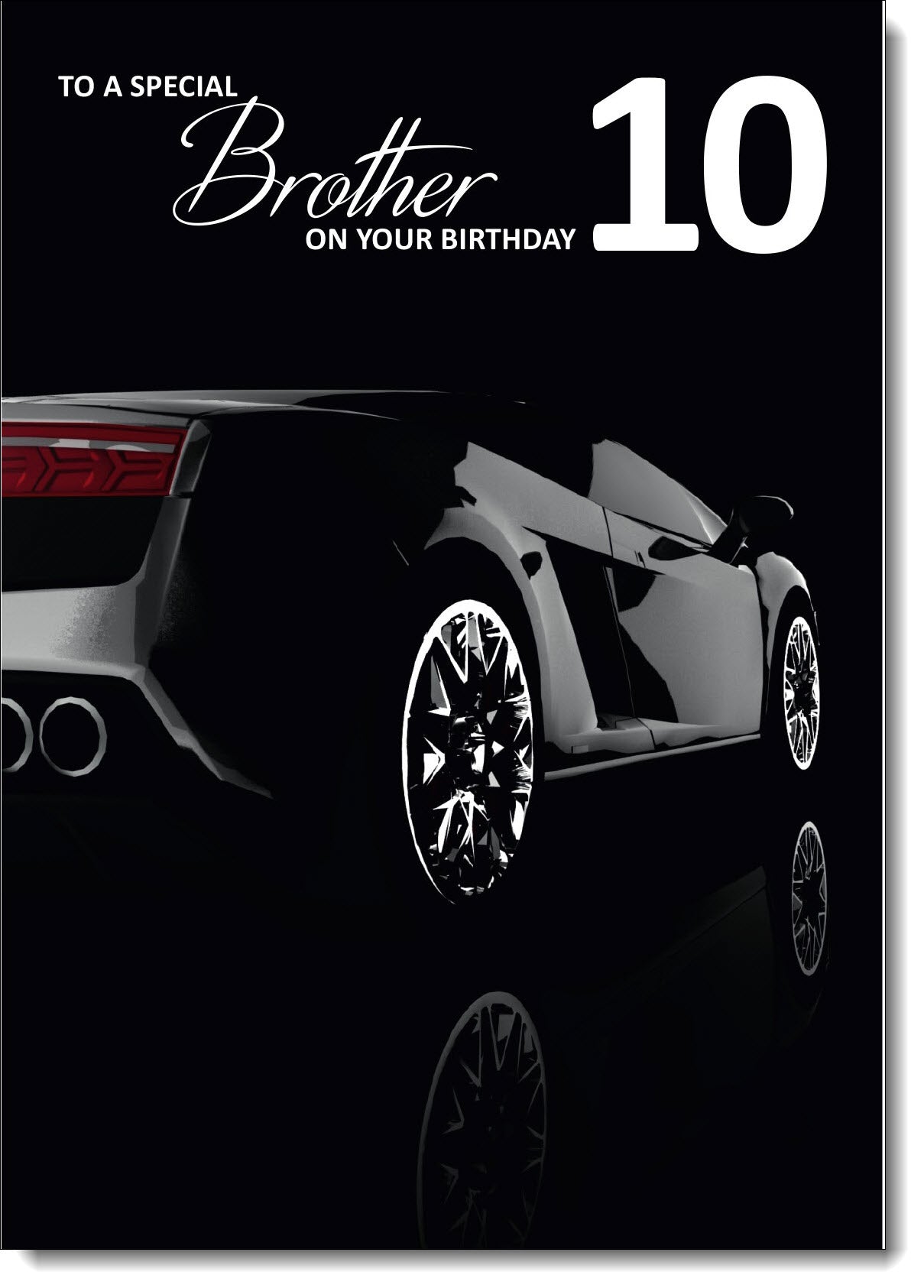 Brother 10th Birthday Card Age 10 Black Lamborghini