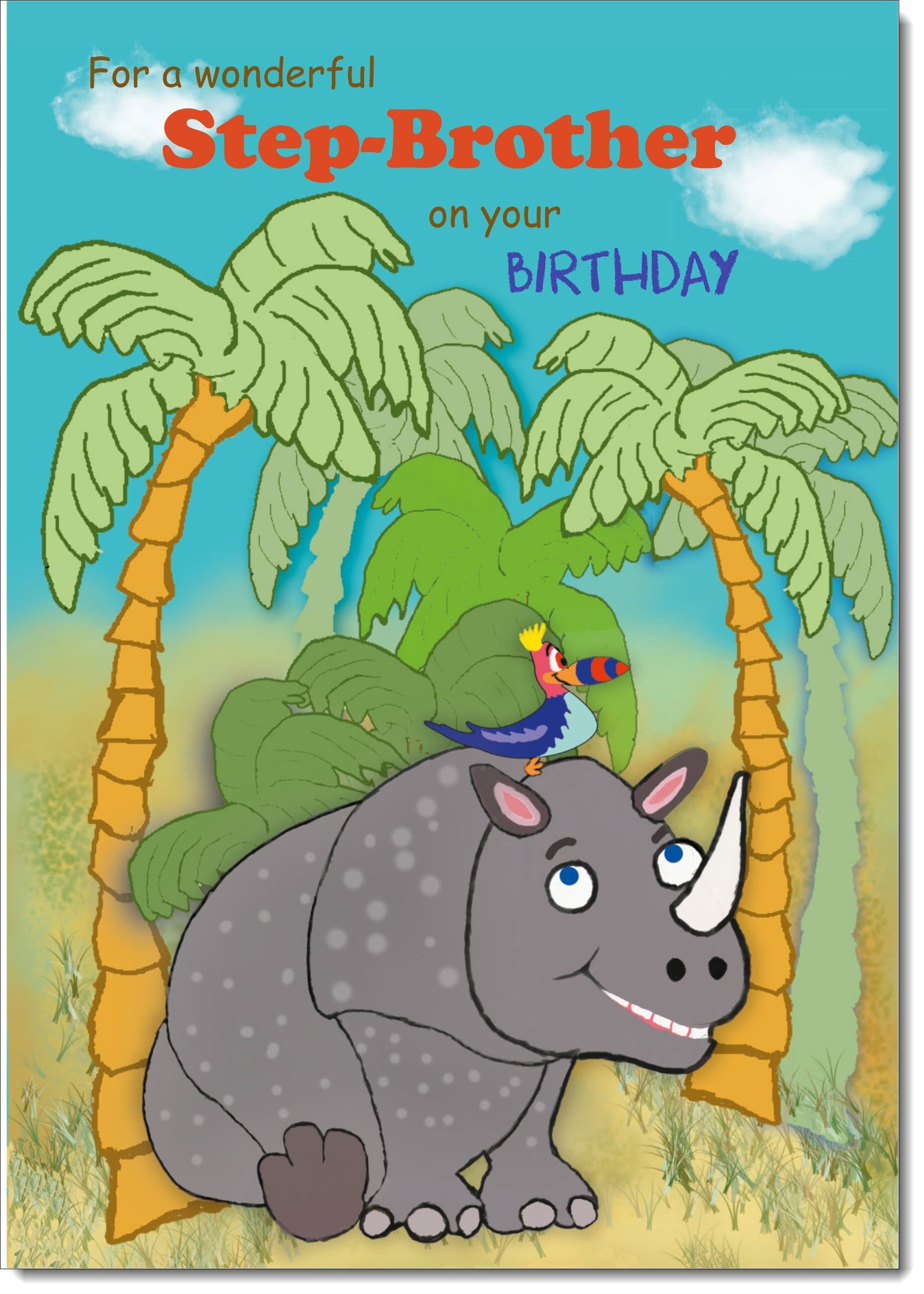 Stepbrother Birthday Card Rhino in the Jungle