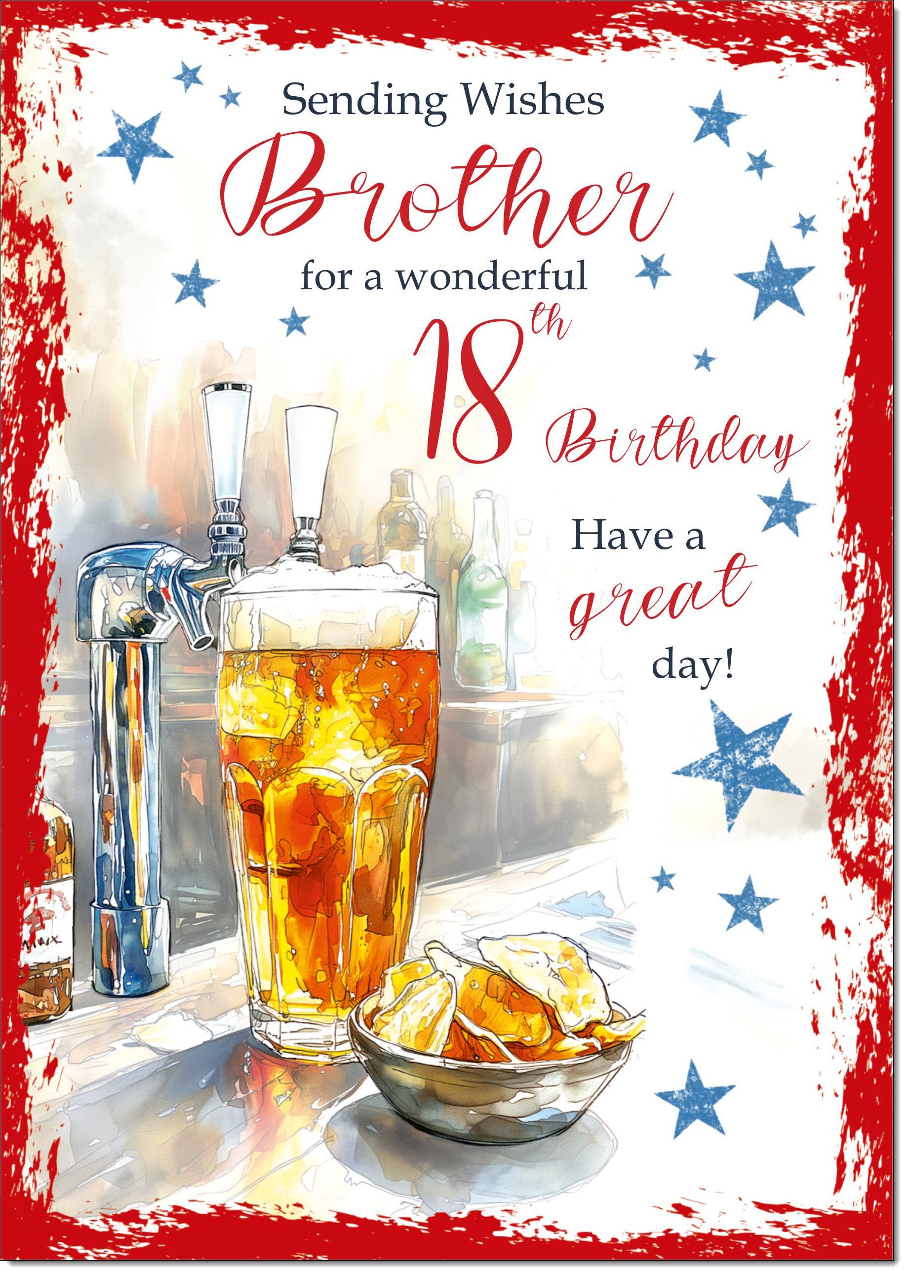 Brother 18th Birthday Card Age 18 Beer and Crisps