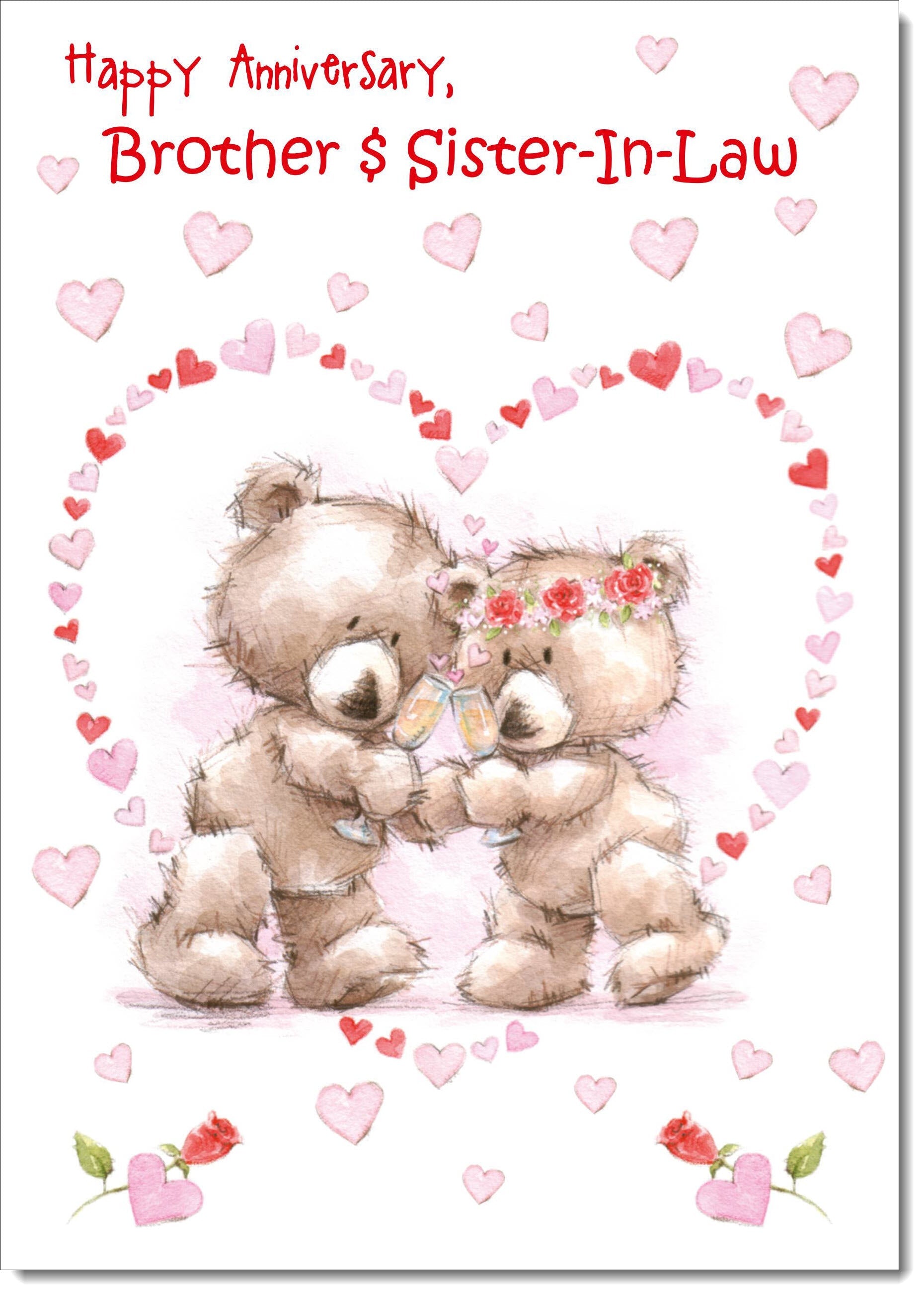Brother & Sister-in-Law Wedding Anniversary Card Cute Teddy Couple in Love