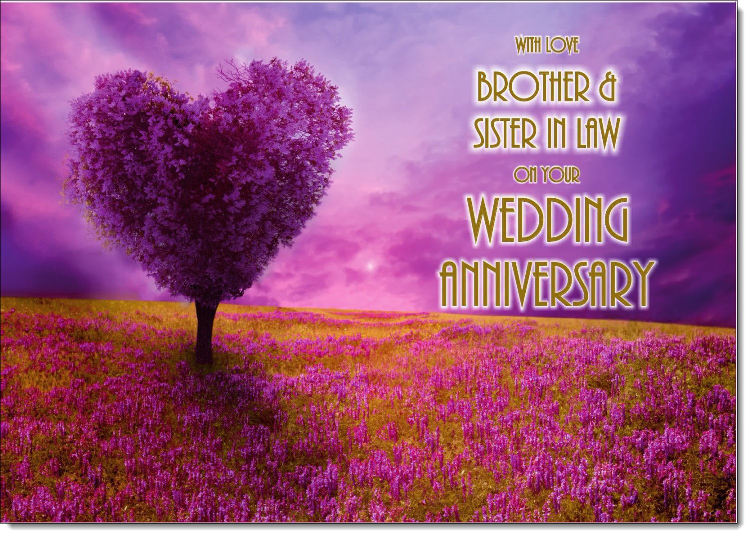 Brother & Sister-in-Law Wedding Anniversary Card Purple Love Heart Tree