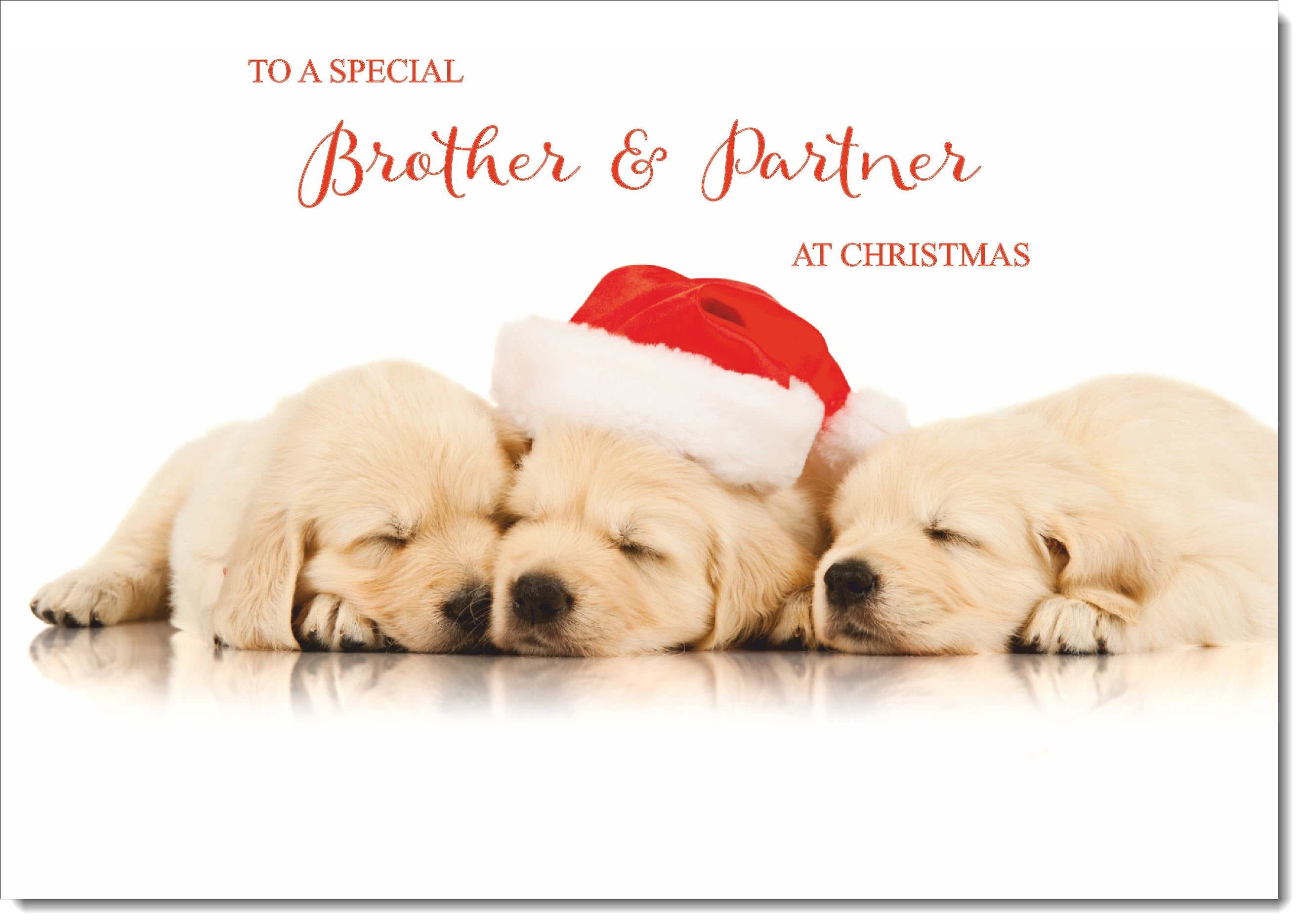 Brother & Partner Christmas Card Christmas Golden Retriever Puppies