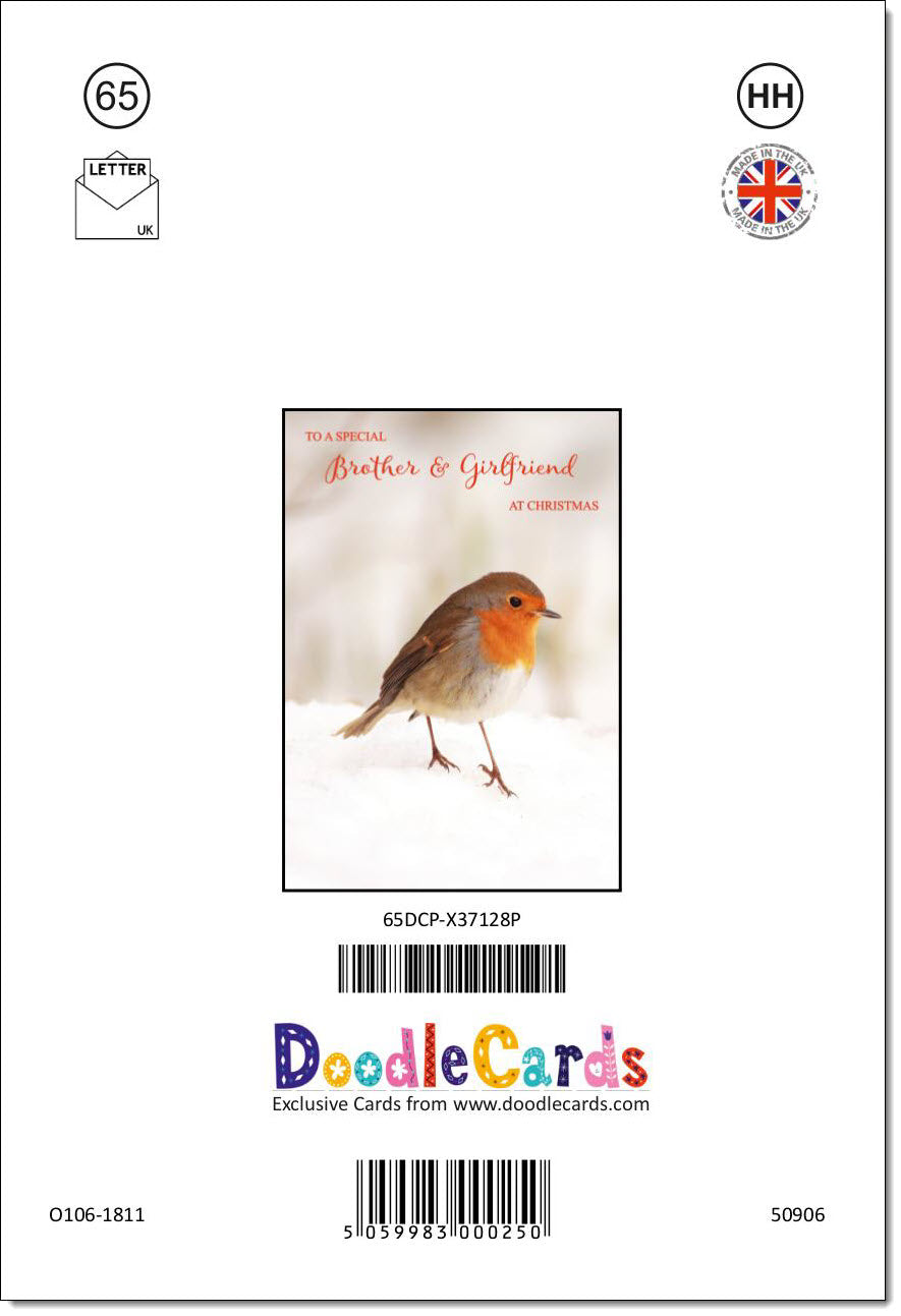 Brother & Girlfriend Christmas Card Robin on Snow
