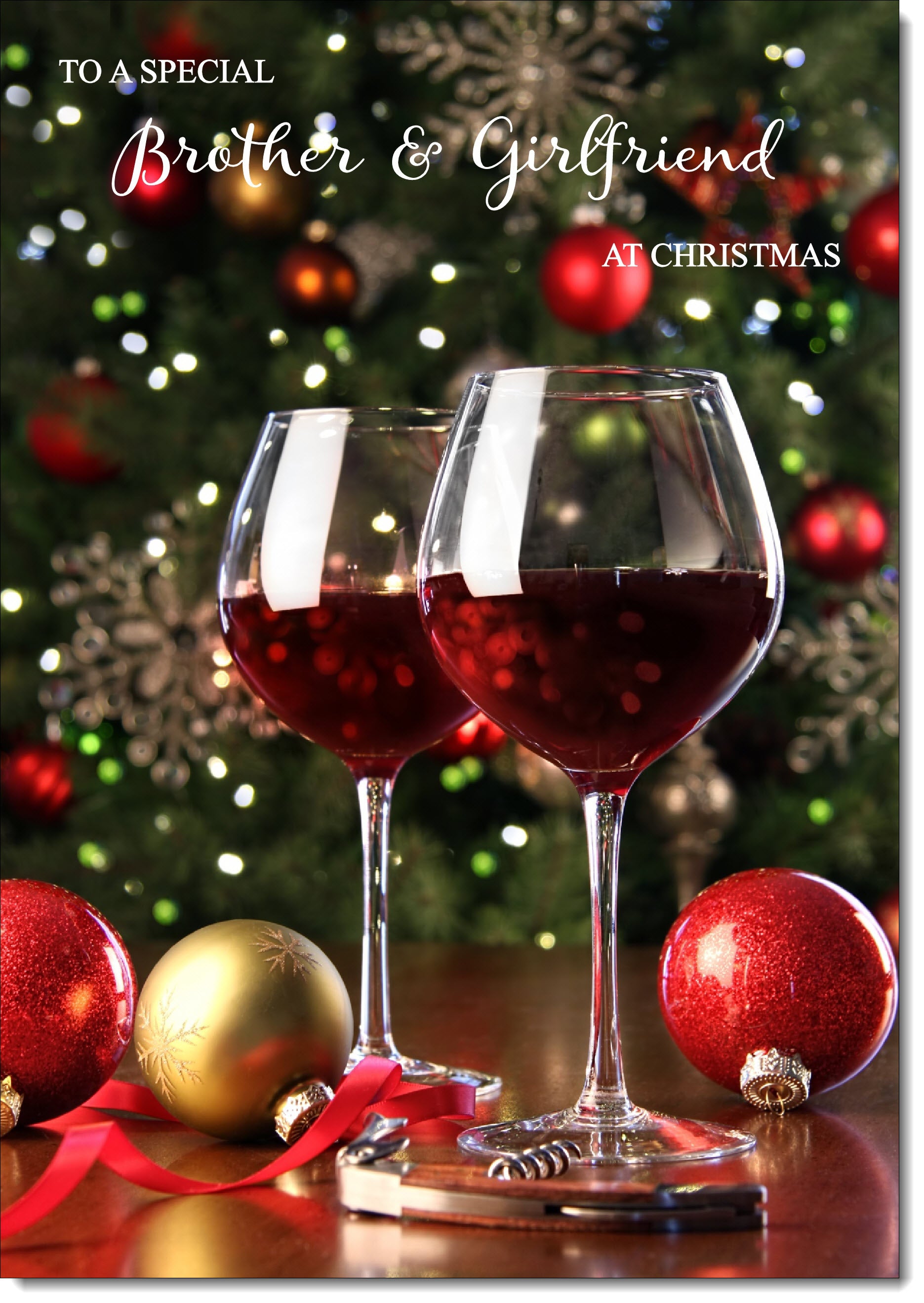 Brother & Girlfriend Christmas Card Red Wine Glasses