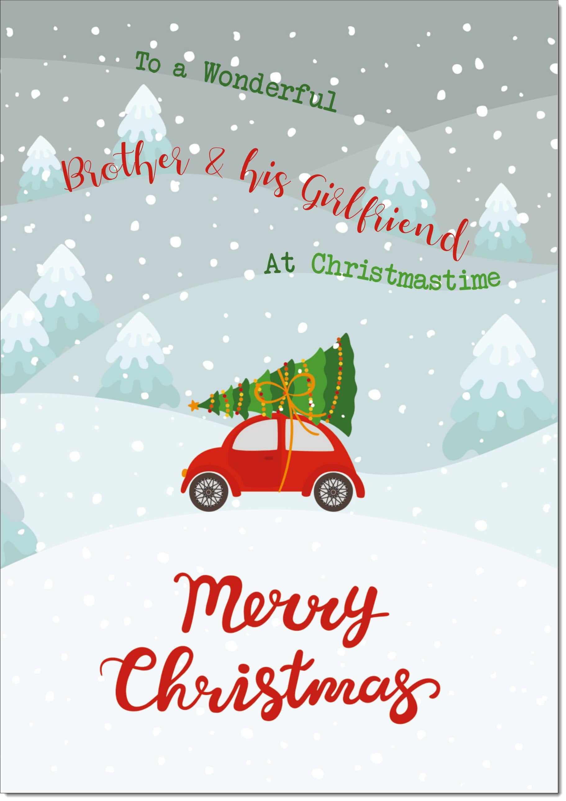 Brother & Girlfriend Christmas Card Christmas Tree on Car