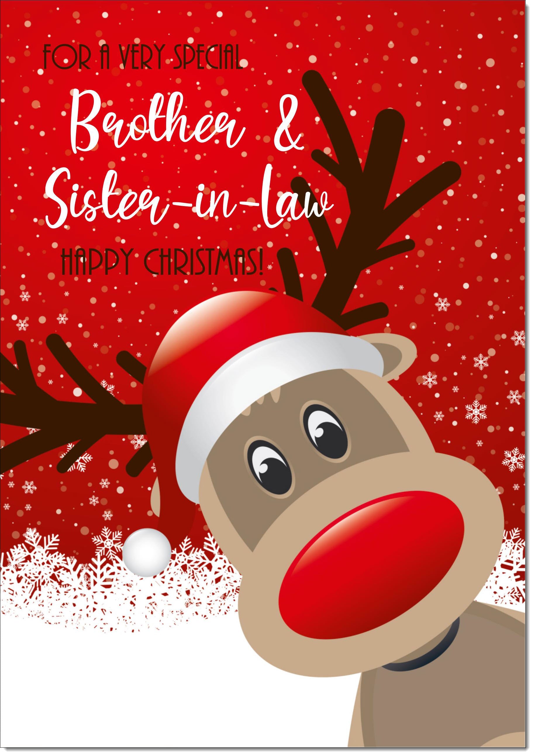 Brother & Sister-in-Law Christmas Card Rudolph in Snow