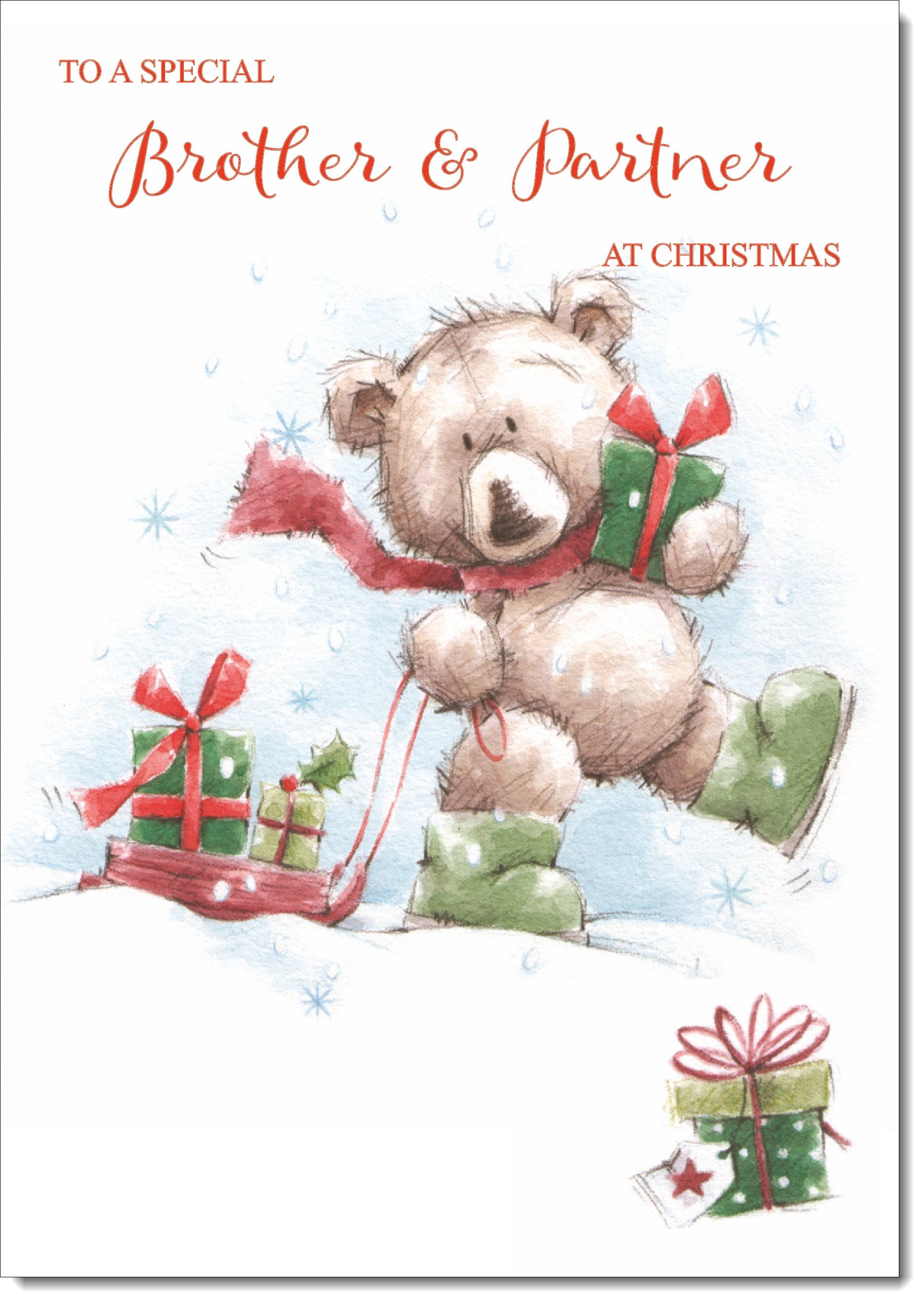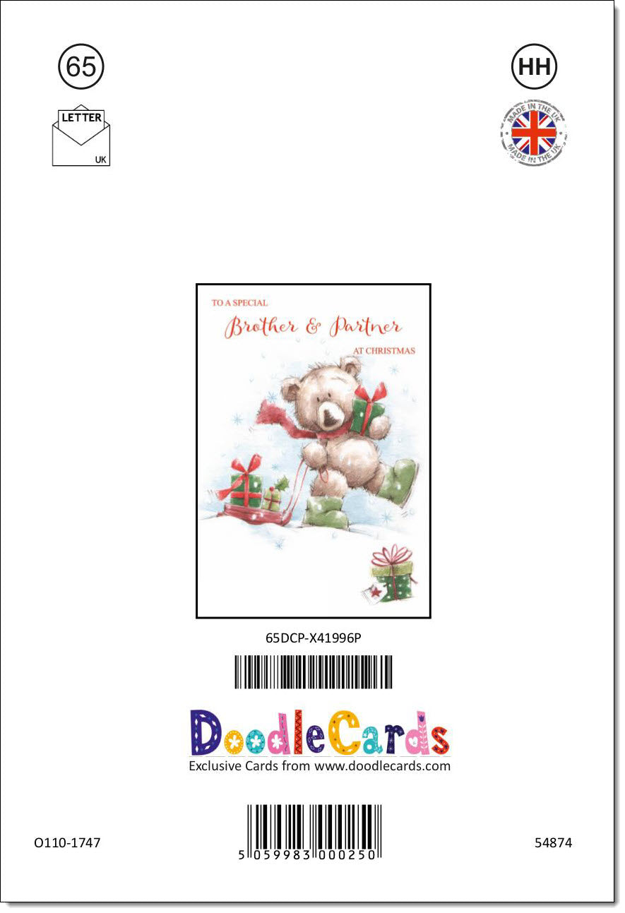 Brother & Partner Christmas Card Cute Bear with Sled