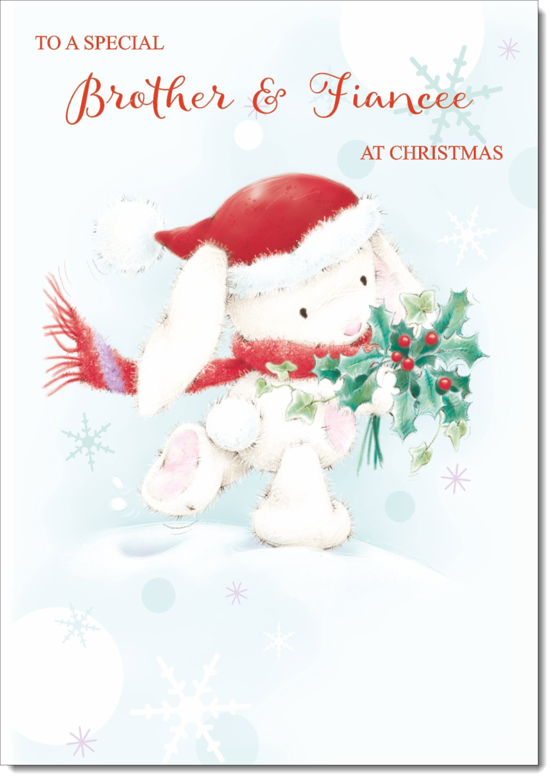 Brother & Fiancee Christmas Card Cute Rabbit with Holly