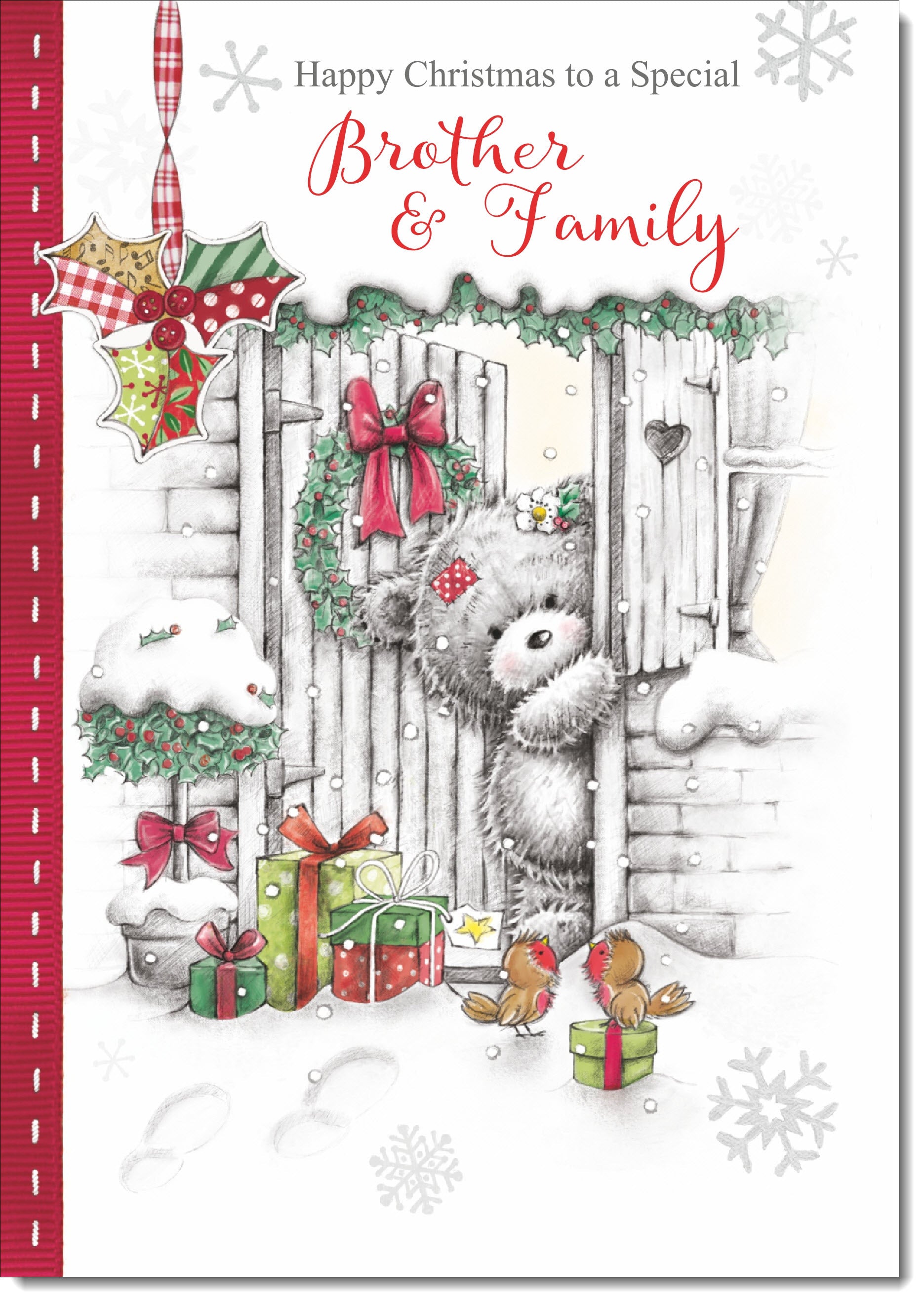 Brother & Family Christmas Card Grey Bear in Snow