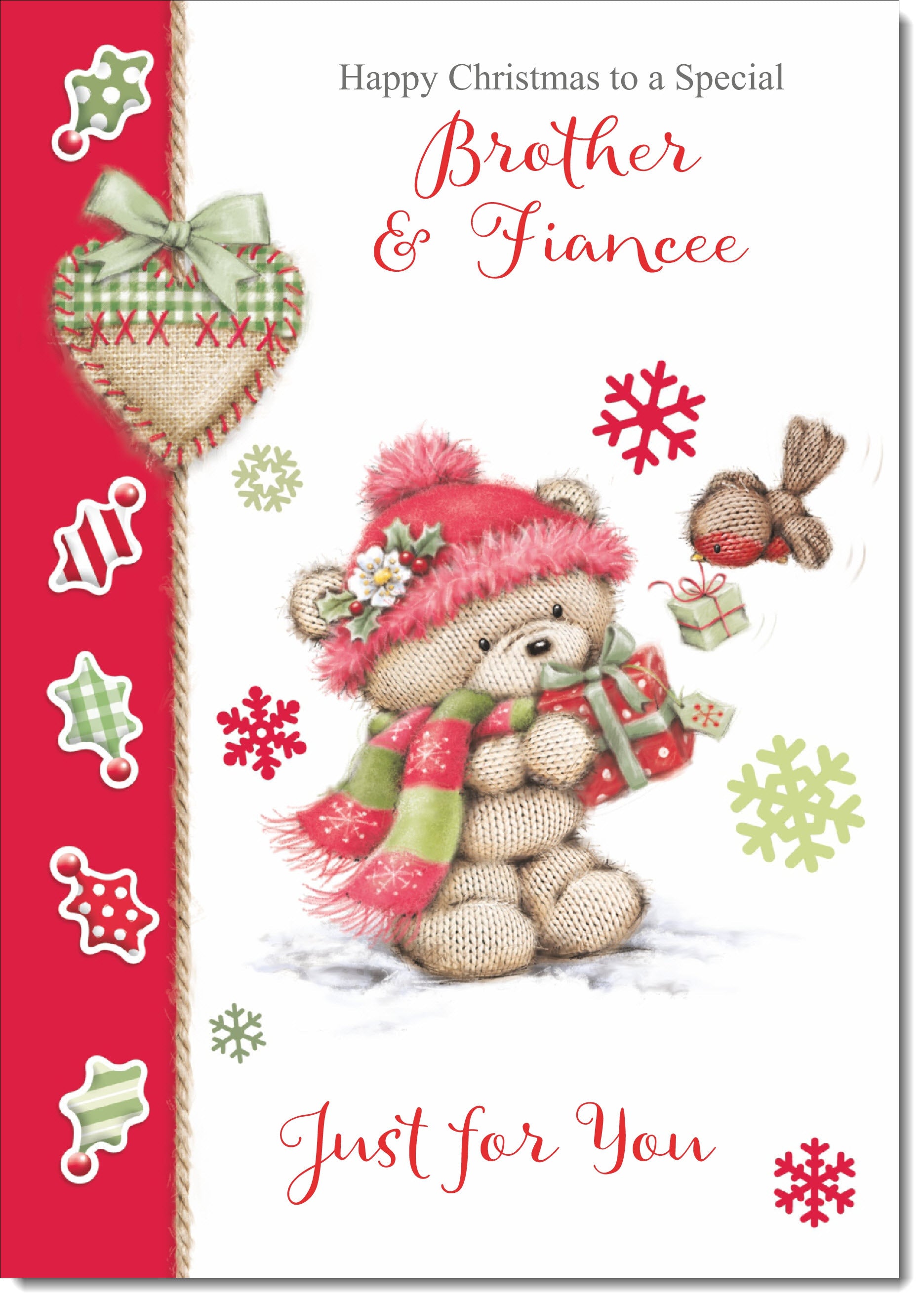 Brother & Fiancee Christmas Card Cute Bear in Pink Bobble Hat