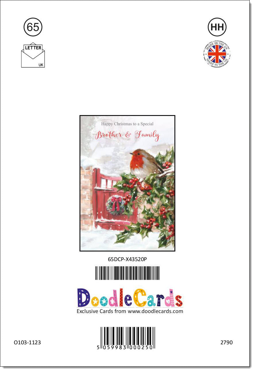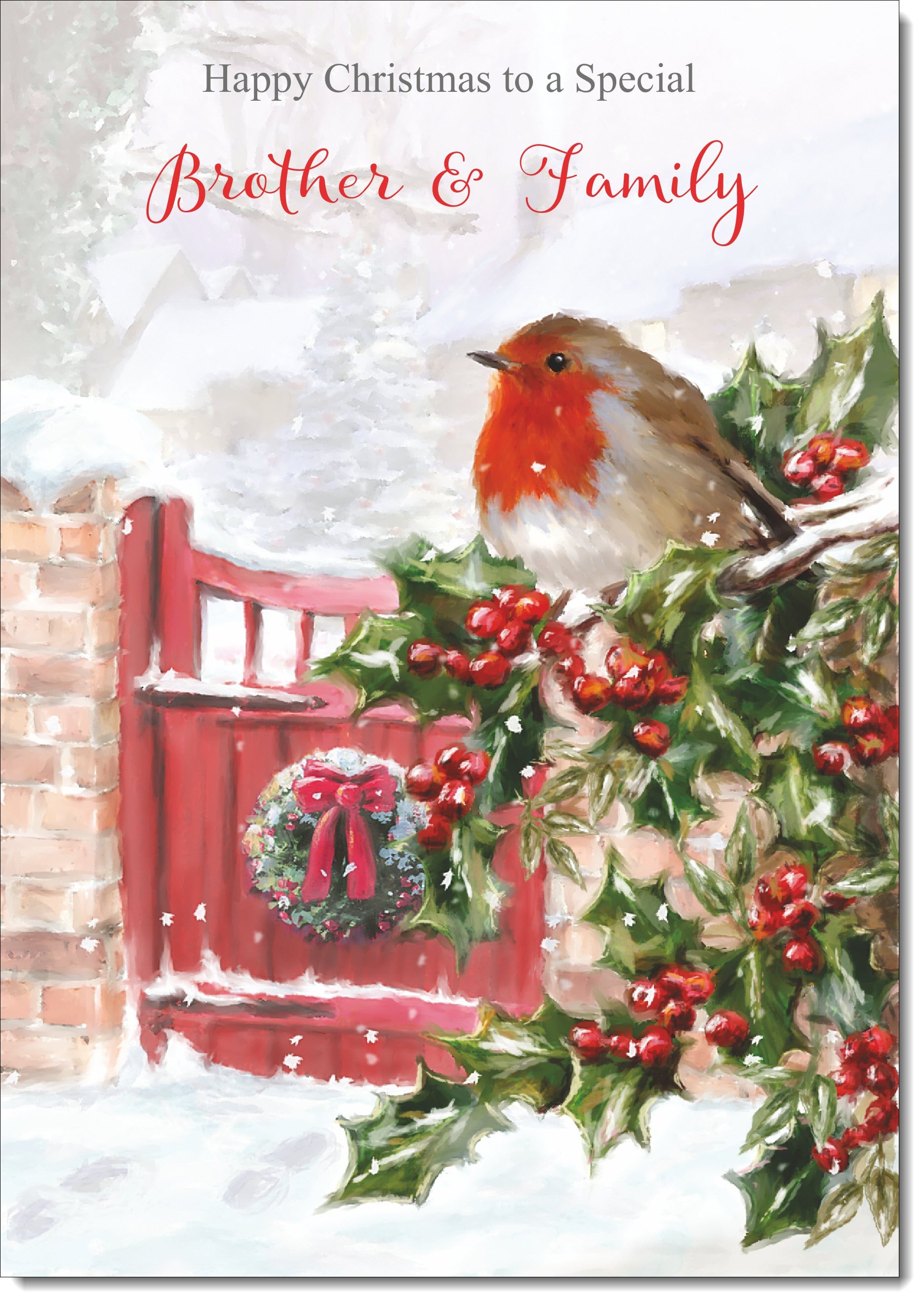 Brother & Family Christmas Card Robin on Holly Tree