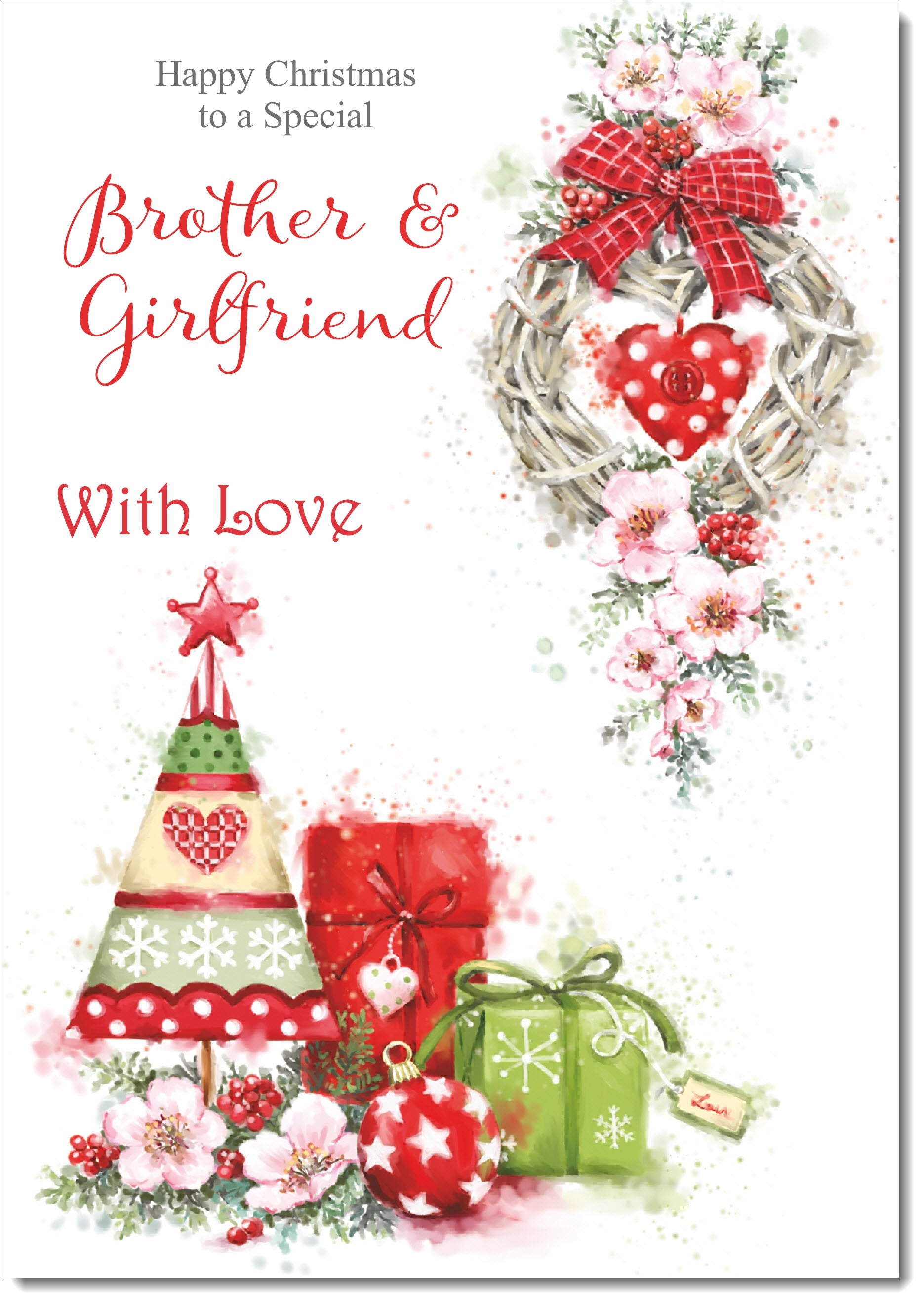 Brother & Girlfriend Christmas Card Hanging Heart Decoration