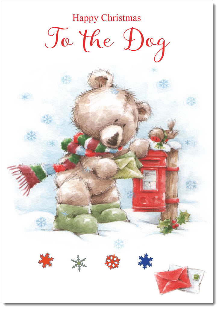 To The Dog Christmas Card Cute Bear in Christmas Parcel