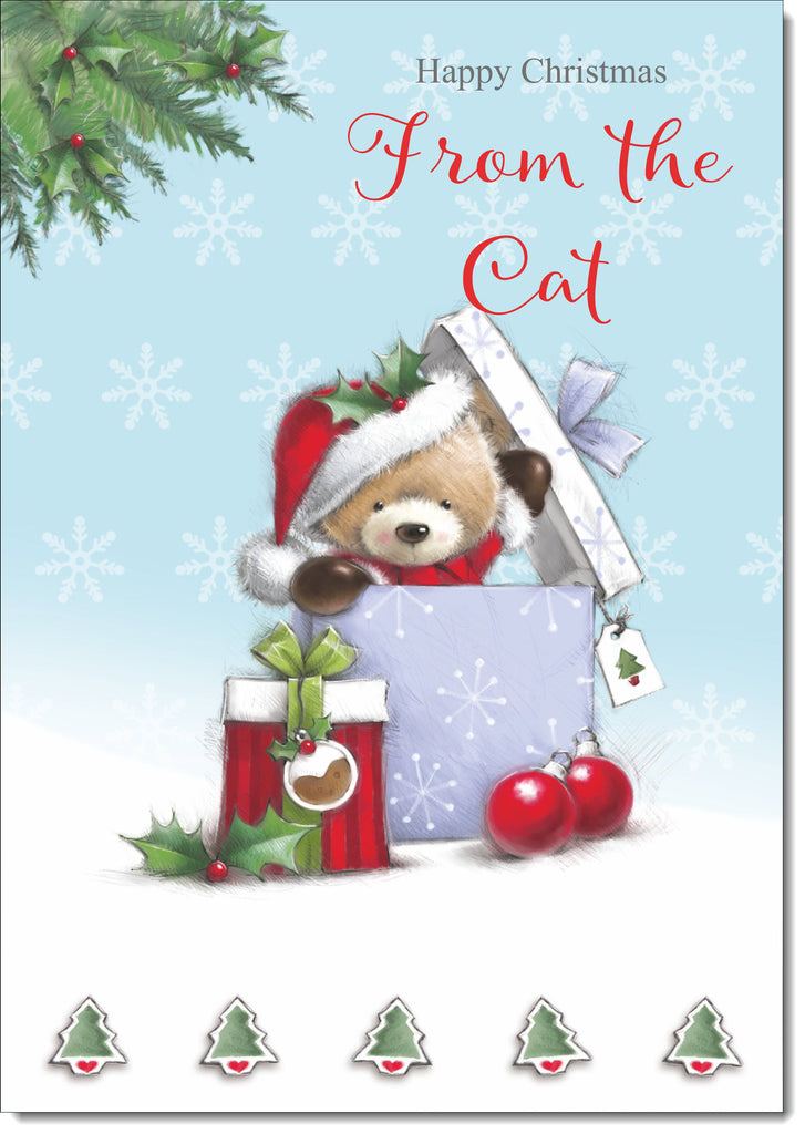 From The Cat Christmas Card Cute Bear in Christmas Parcel