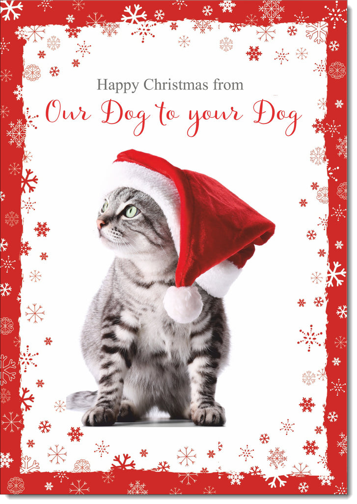 Our Dog To Your Dog Christmas Card Cat with Santa Hat