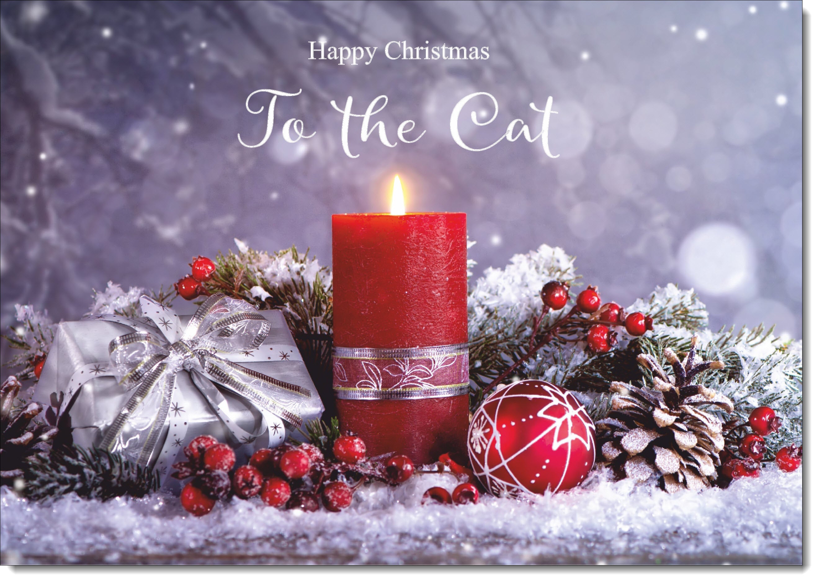To The Cat Christmas Card Festive Red Candle