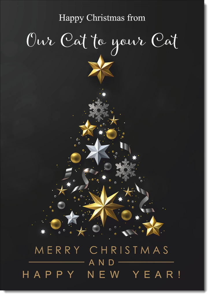 Our Cat To Your Cat Christmas Card Black Abstract Christmas Tree
