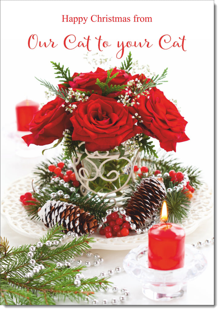 Our Cat To Your Cat Christmas Card Red Christmas Roses
